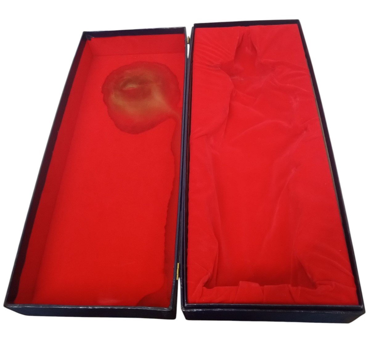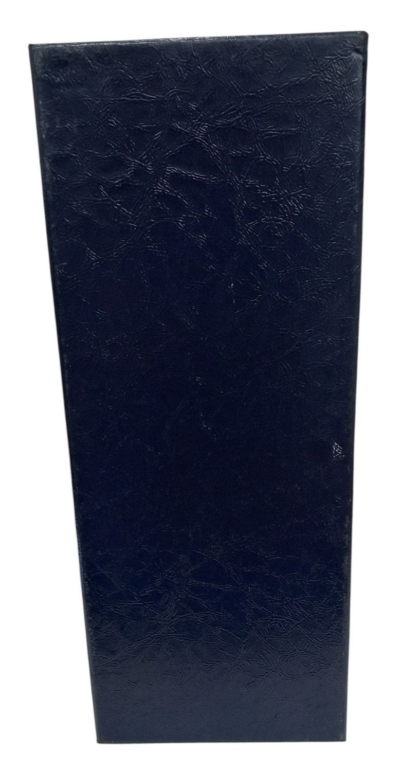 This is a vintage Jim Beam decanter likely made around the 1960s. The box has minor marks and stains, and the decanter itself has minor scratches and stains. This is a great item for any aspiring collector and is a perfect fit in any collection of breweriana! Makes a good conversation piece! This measures about 19" by 8" by 5", and holds 4/5 quarts.