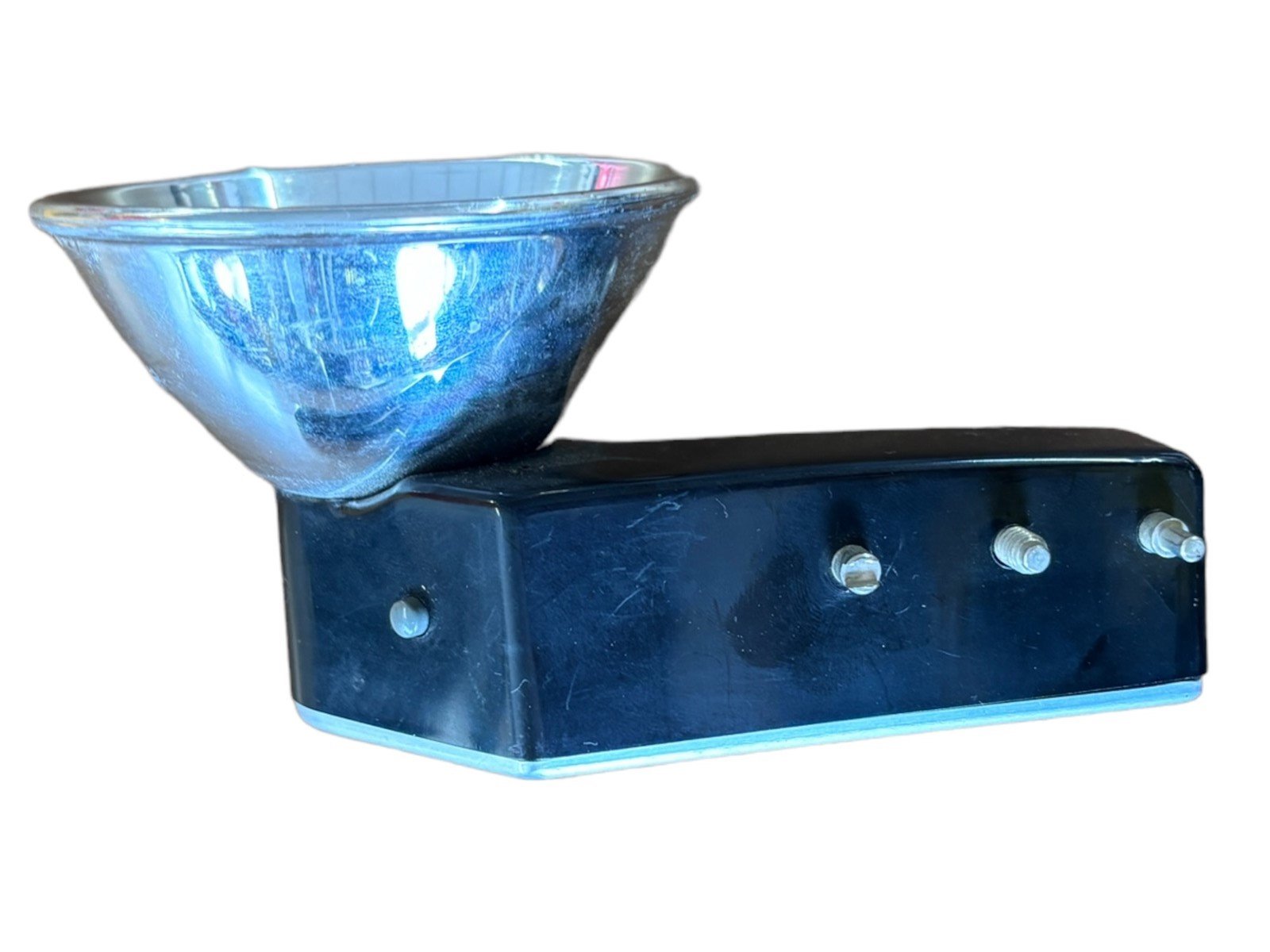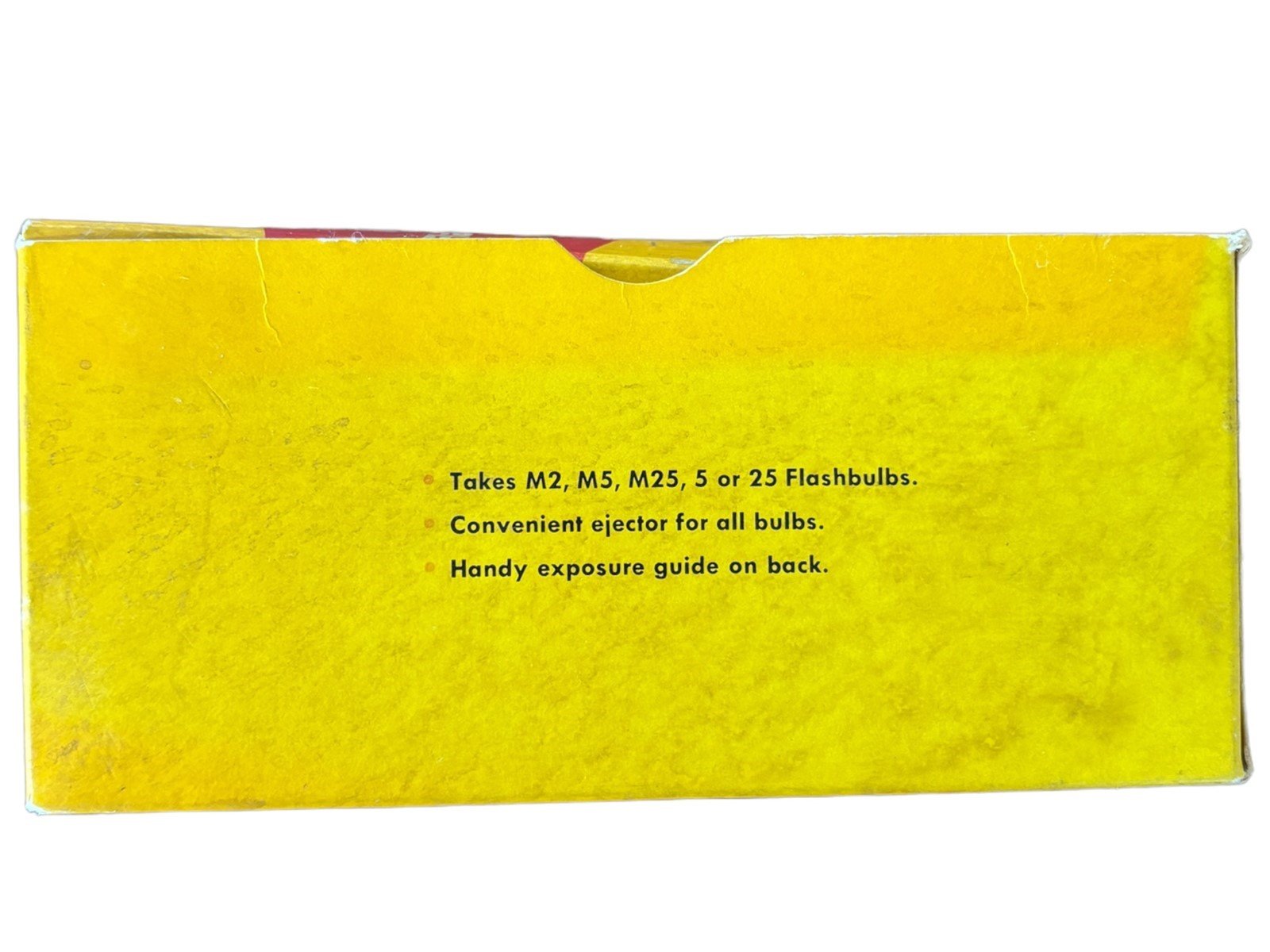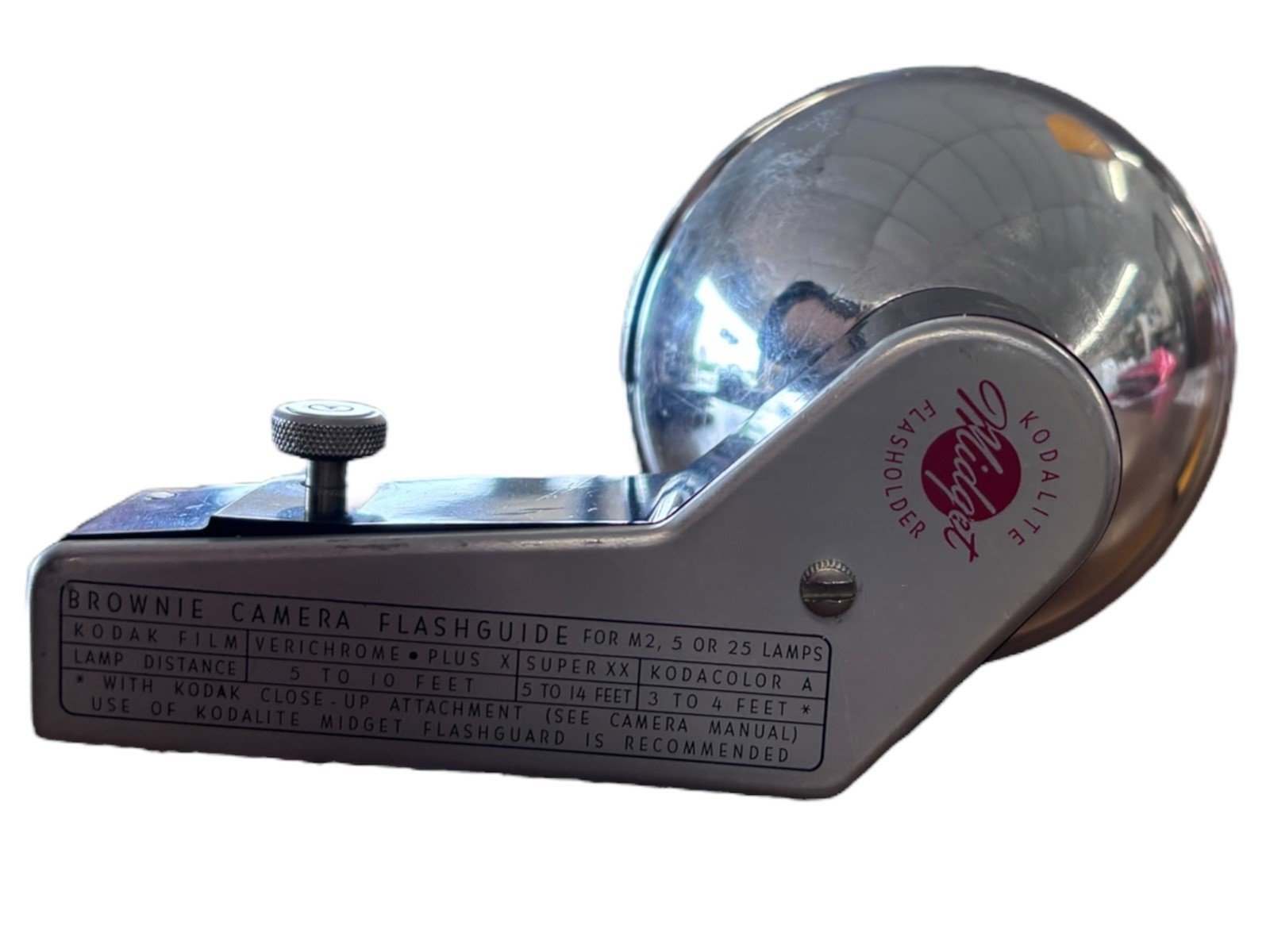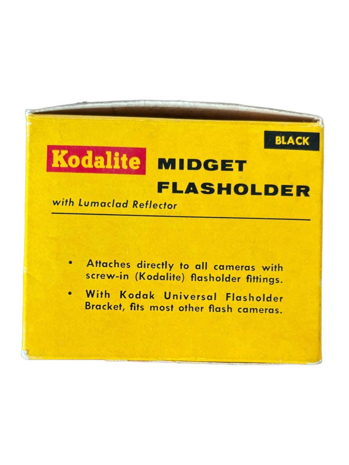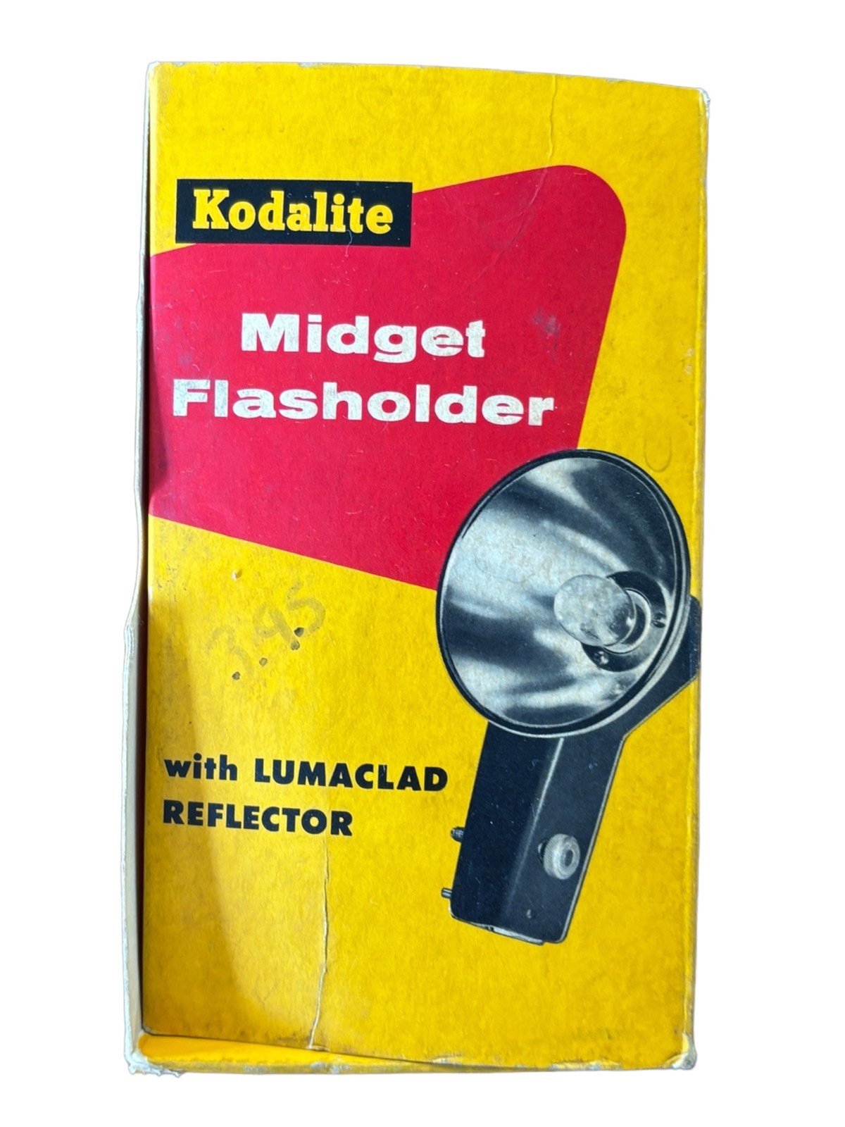 This is a midget flasholder by Kodalite. It can take a M2, M5, M25, 5 or 25flashbulbs. It's in good condition however I don't have the correct bulb to test it to see if it works. It measures 5 1/2in x 3 1/4in x 3in.Take a look at the pictures for the best description. A photo is as good as a thousand words and is the best description of cosmetic condition. Use your ZOOM TOOL to best see this item! Please look closely at the photos for condition answers.