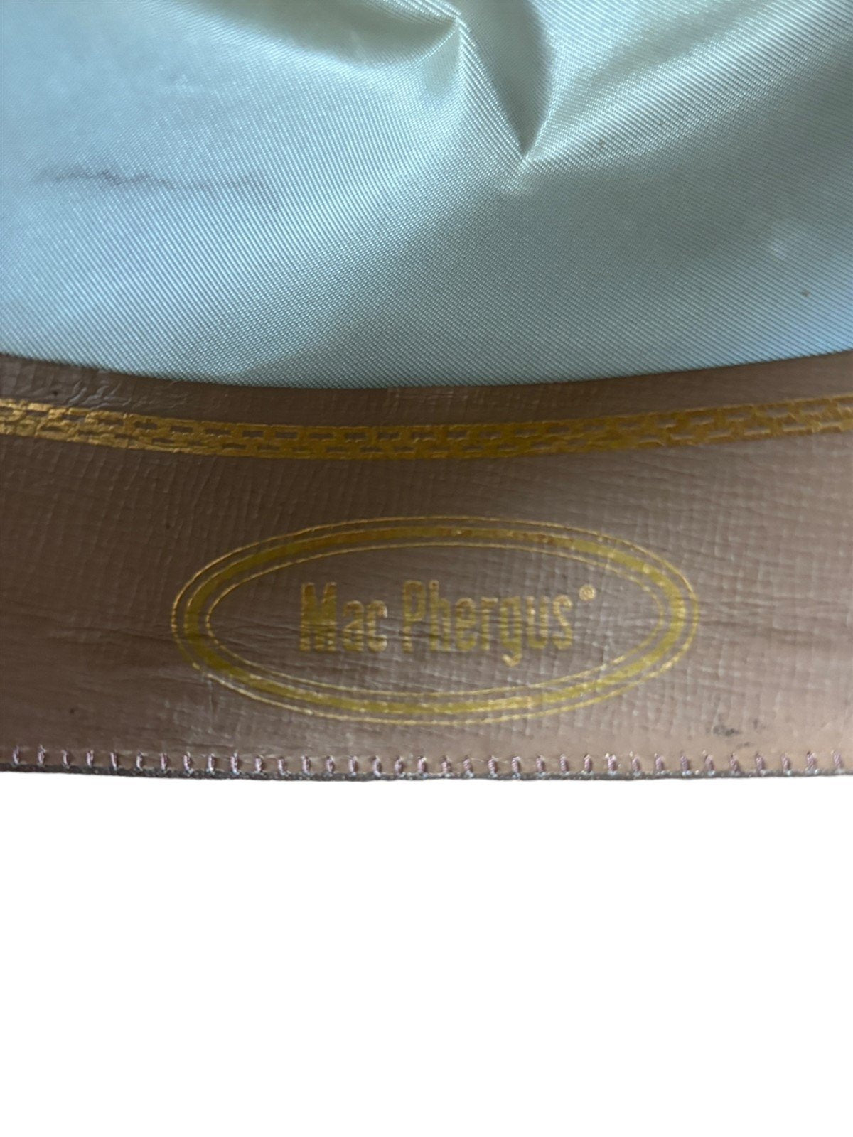 This is a Mac Phergus Fedora. It has Strouss-Hirshberg Contour-oval on the inner rim of the hat. It measures 11in x 9 1/2in x 6in.Take a look at the pictures for the best description. A photo is as good as a thousand words and is the best description of cosmetic condition. Use your ZOOM TOOL to best see this item! Please look closely at the photos for condition answers.