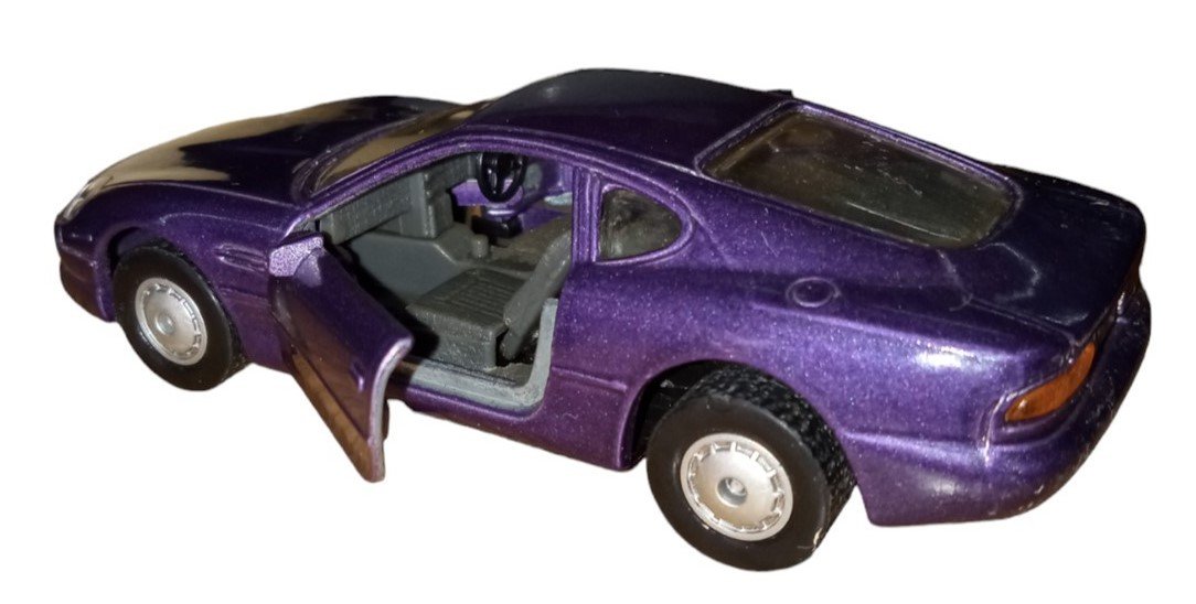 This is a vintage Aston Martin DB7 diecast model car made by Maisto likely around the 1990s. There are some minor scuffs and scratches. This is a great item for any aspiring collector and is a perfect fit in any diecast collection! This measures about 4" by 2" by 2".