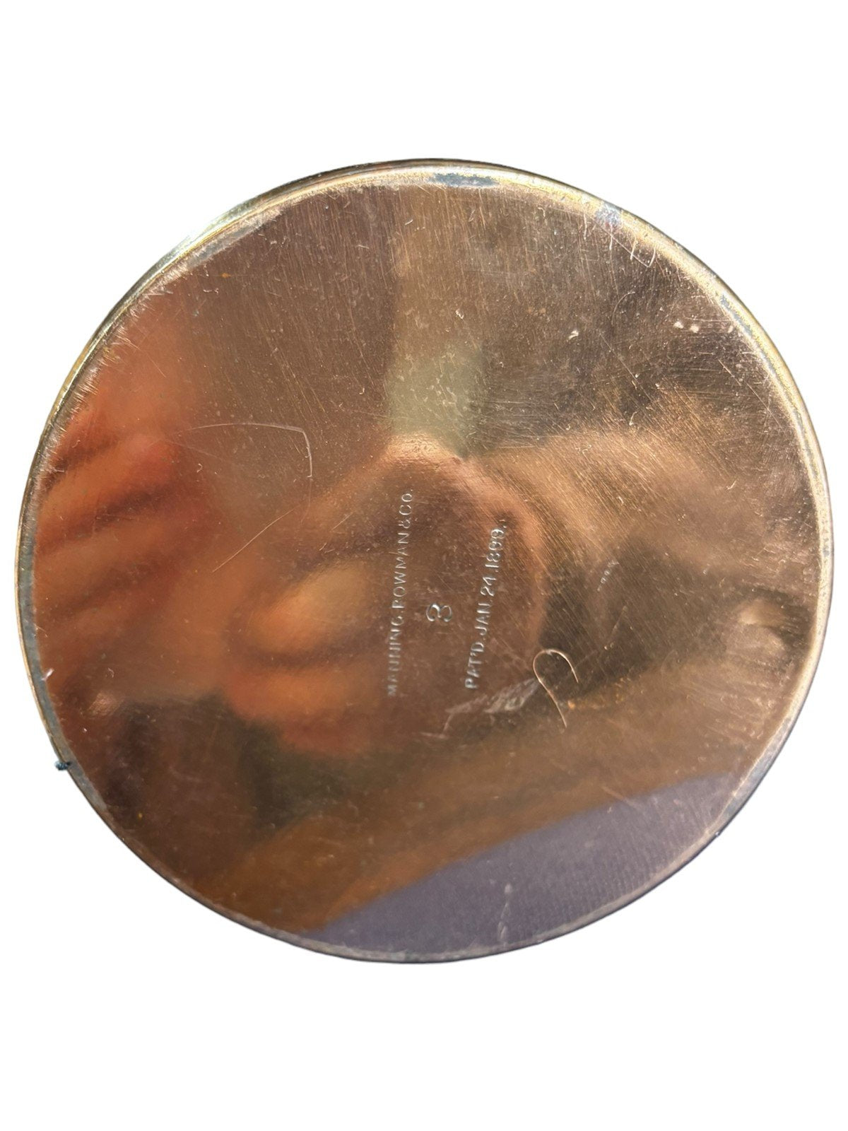 This is a Manning Bowman & Co. copper tea/coffee pot No. 3 Pat'd Jan 24, 1899. It's in great condition, the copper half just has a few scratches. It measures 9 1/2in x 4 1/2in x 7in.Take a look at the pictures for the best description. A photo is as good as a thousand words and is the best description of cosmetic condition. Use your ZOOM TOOL to best see this item! Please look closely at the photos for condition answers.