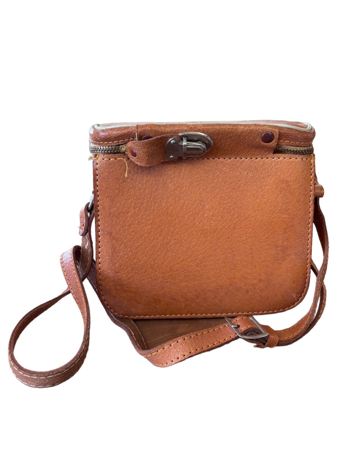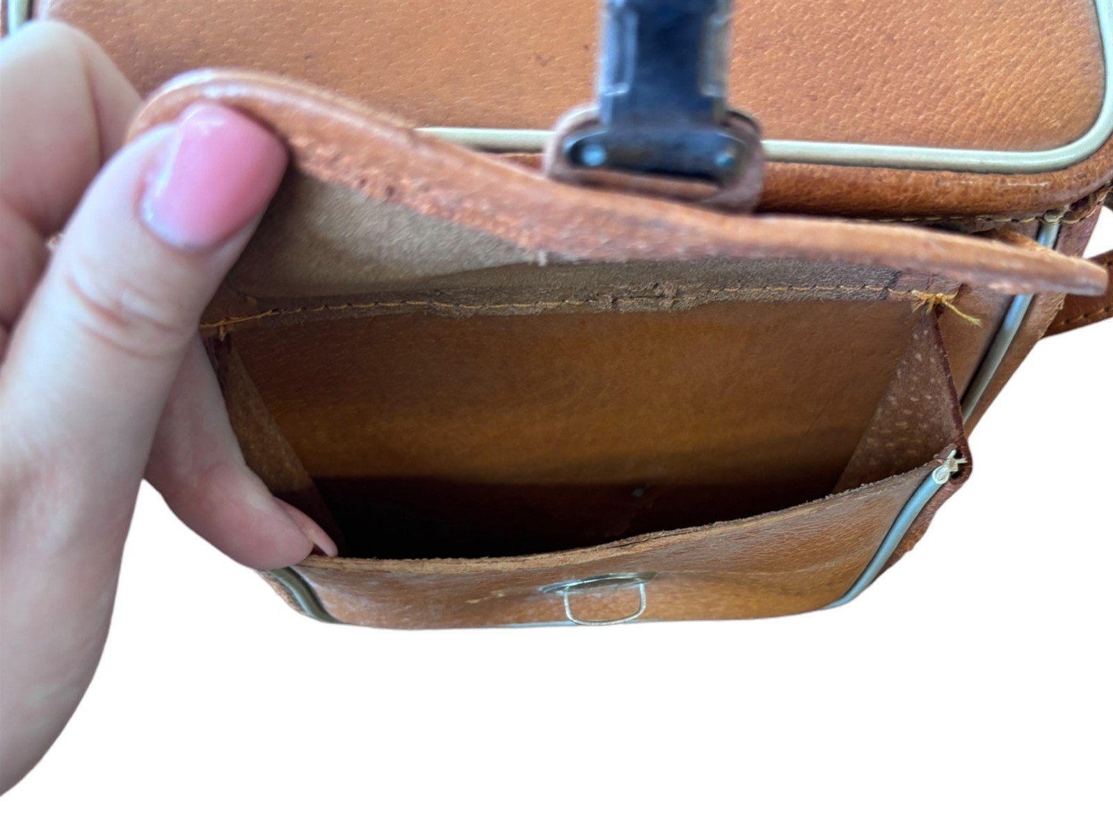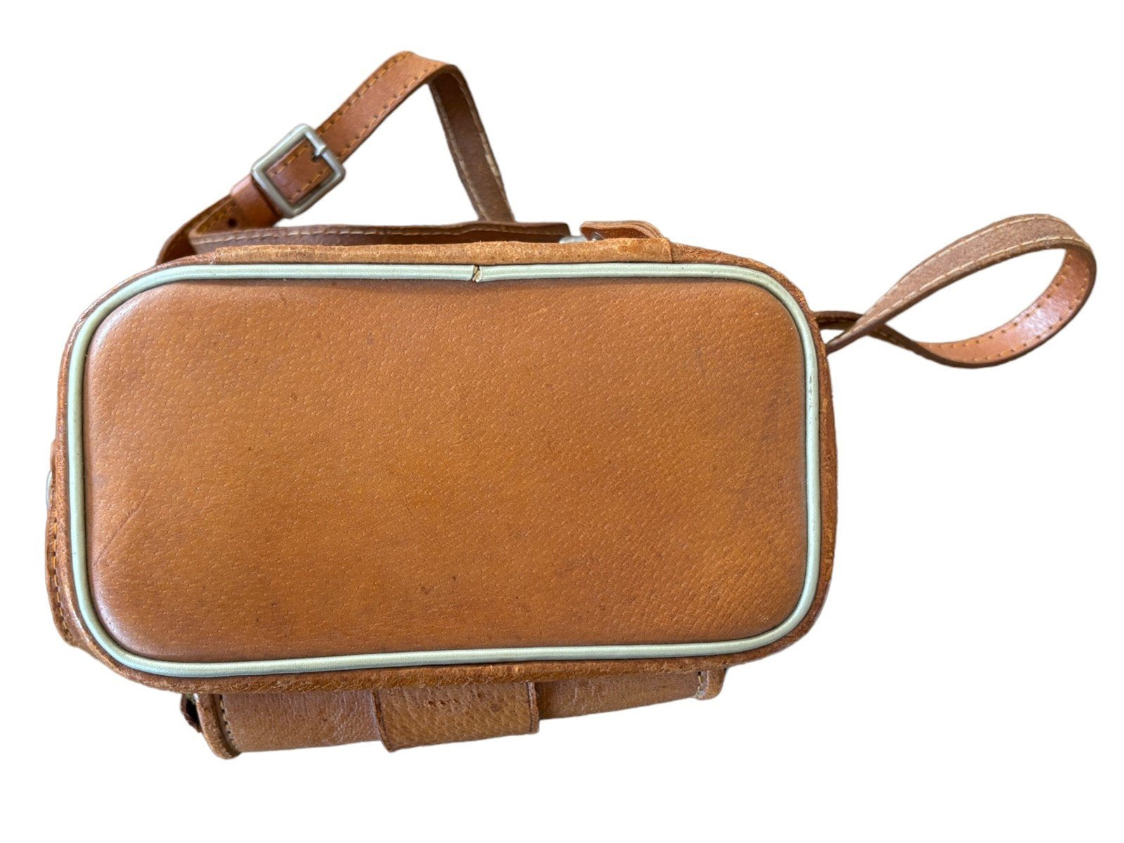 This is a Mayfoto camera bag made out of genuine pigskin. It has a clasp on the zipper and on the frontal pocket. There is a pocket on the top inside of the bag that snaps shut. It's in good condition and measures 7in x 5in x 6 1/2in. The strap is adjustable.Take a look at the pictures for the best description. A photo is as good as a thousand words and is the best description of cosmetic condition. Use your ZOOM TOOL to best see this item! Please look closely at the photos for condition answers.