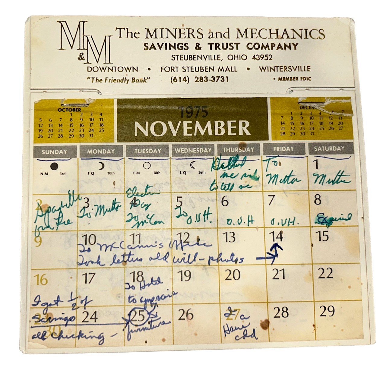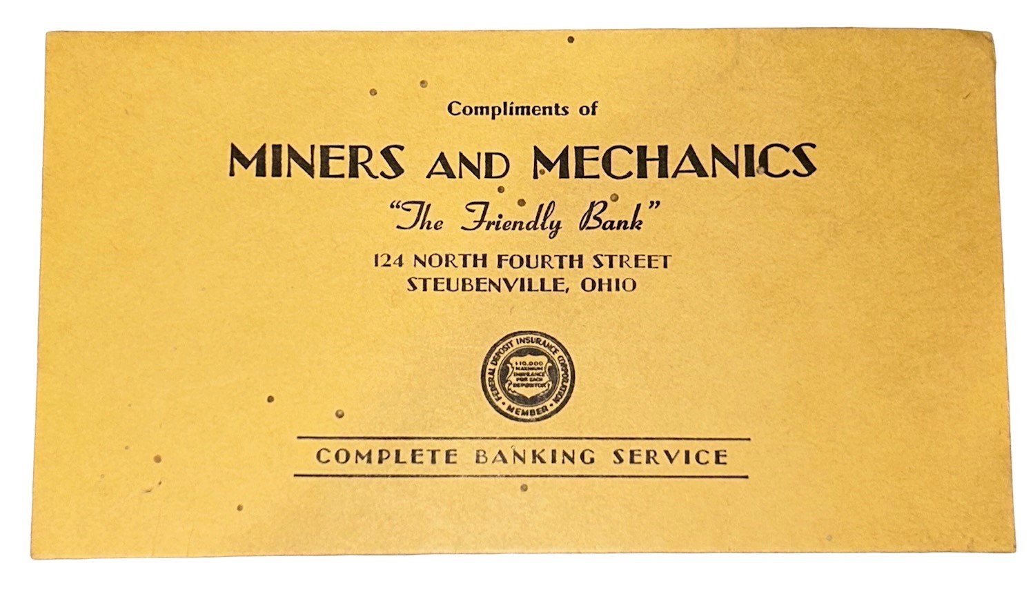 Miners and Mechanics Bank and Steubenville Calendar Envelope Check Deposit Book