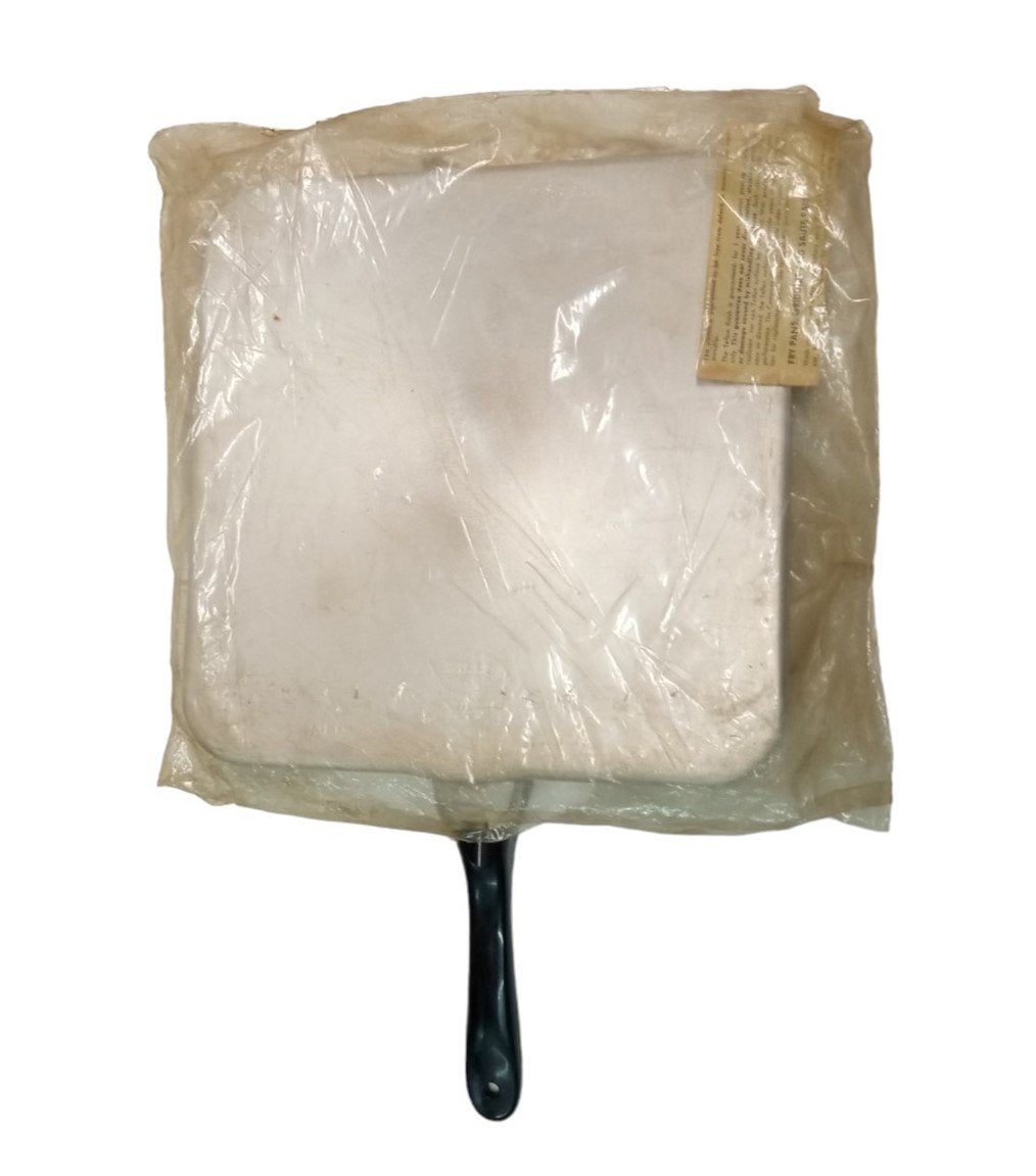 This is a vintage square griddle made by Mirro likely around the 1960s. It is in good condition for its age and comes in the original packaging. This is a great item for any aspiring collector and is a perfect addition to any chef's tool set!