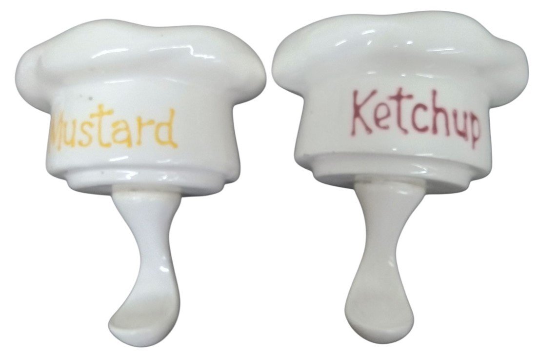 Napco Chef Head Ketchup & Mustard Canisters 5" 1959 Vintage Novelty Kitchenware