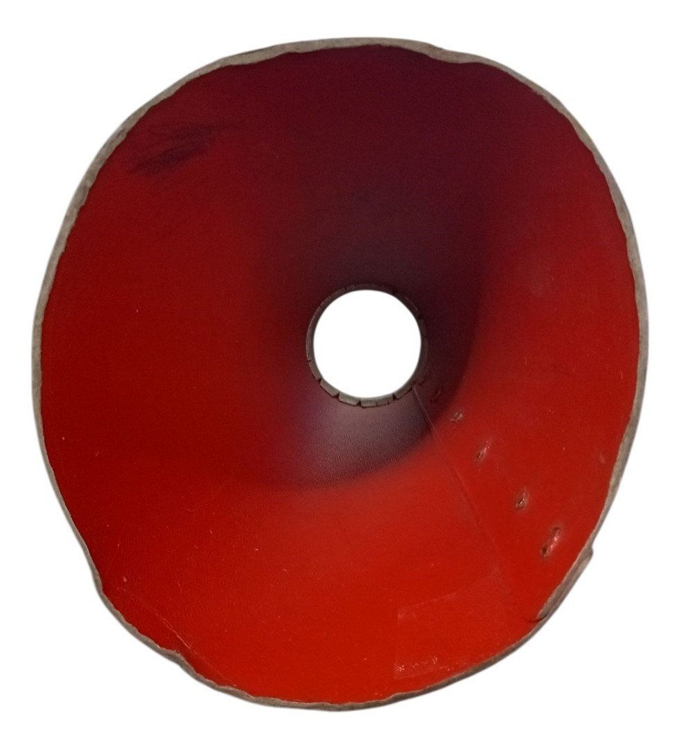 This is a vintage Struthers Wildcats cheerleading megaphone likely used in the 1950s or 1960s. Marks and scratches are visible as well as some minor warping. This is a great item for any aspiring collector and would make an awesome vintage display piece! This measures about 7" by 5" by 4.5".