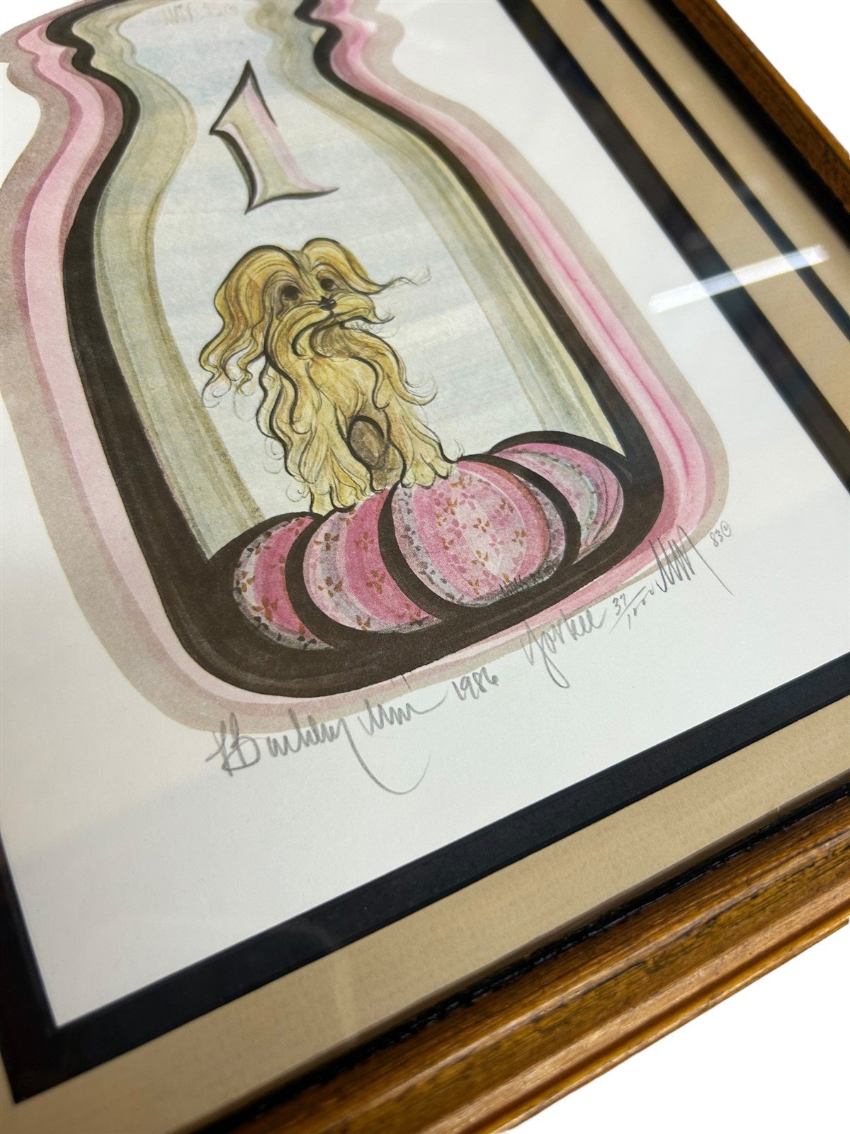P Buckley Moss 1986 Yorkie in a Jar 37/1000 Signed Print with Frame