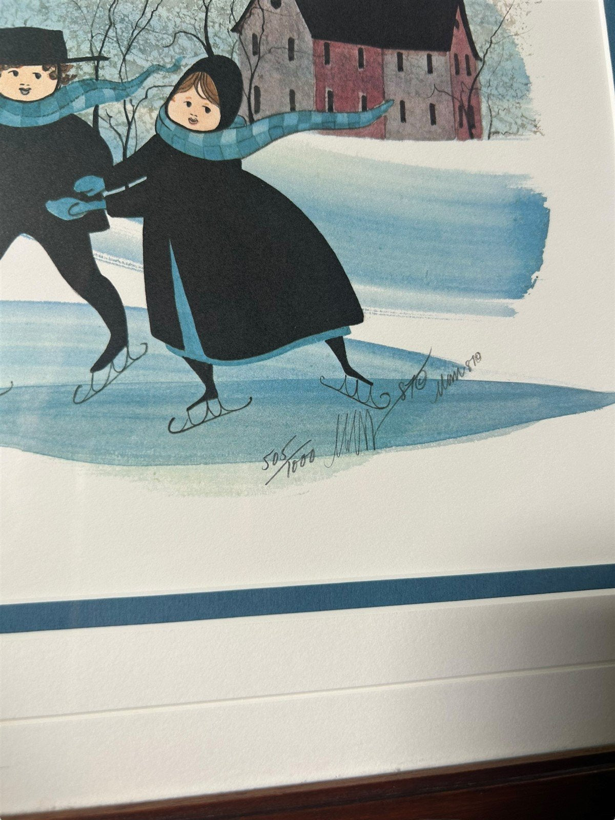 P. Buckley Moss Signed Print "Skating Away" 505/1000 Framed