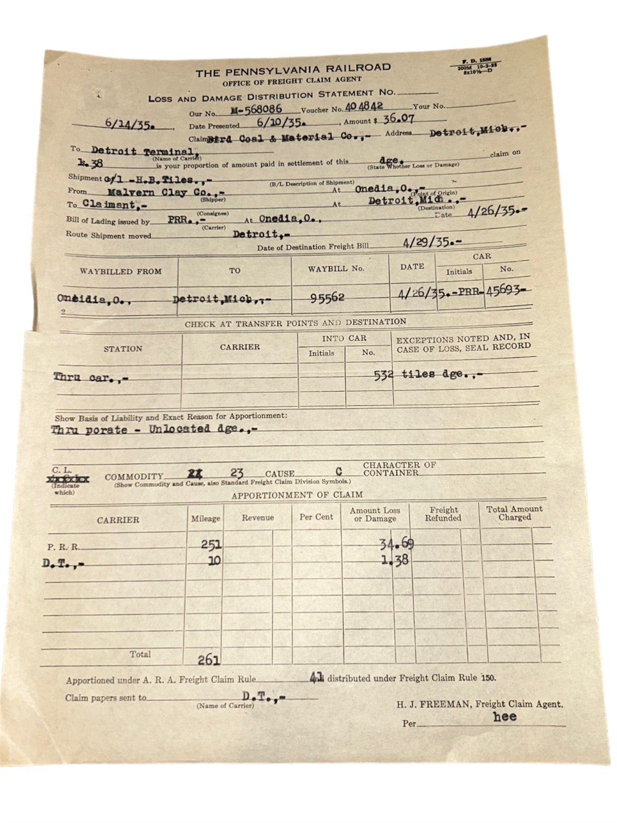 Up for sale are four pieces of paper from the Pennsylvania Railroad from the early 1900s. These original pieces of paper talk about the amount of cars switched shortages in drafts, shipment waybills along with the loss and damage report from 1935. Nice collection from one of the greatest railroads in the country.Take a look at the pictures for the best description. A photo is as good as a thousand words and is the best description of cosmetic condition. Use your ZOOM TOOL to best see this item! Please look closely at the photos for condition answers.