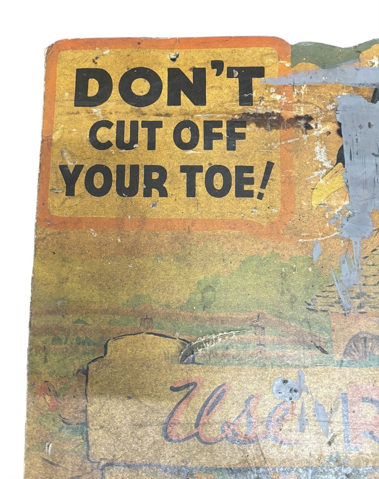 Awesome Antique Advertisement: Reese's Corn Remover. This ad is so silly and fun! Says "Don't Cut Off Your Toe!" with various animals. Makes super fun decor and a great collectible. Condition is as shown. Measures 21" x 30".Take a look at the pictures for the best description. A photo is as good as a thousand words and is the best description of cosmetic condition. Use your ZOOM TOOL to best see this item! Please look closely at the photos for condition answers.