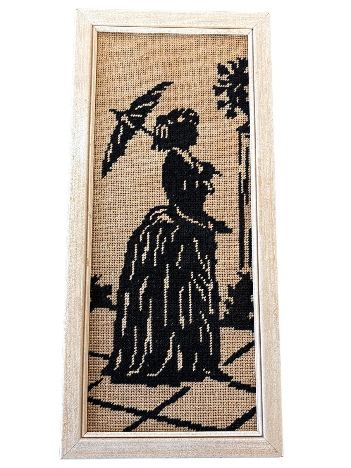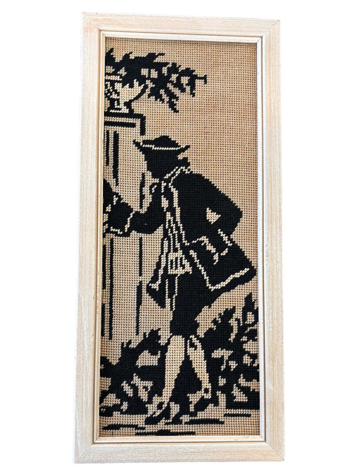 This is a set of embroidered man and lady silhouettes during the regency period. They are in good condition. They are each 6 1/2in x 1/2in x 14in.Take a look at the pictures for the best description. A photo is as good as a thousand words and is the best description of cosmetic condition. Use your ZOOM TOOL to best see this item! Please look closely at the photos for condition answers.