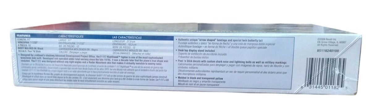 This is a F-117 Nighthawk aircraft model made by Revell in 2008. It is brand new and still sealed in the original box. This is a great item for any aspiring collector and is a perfect fit in any model aircraft collection! This measures about 11" by 6" by 2".