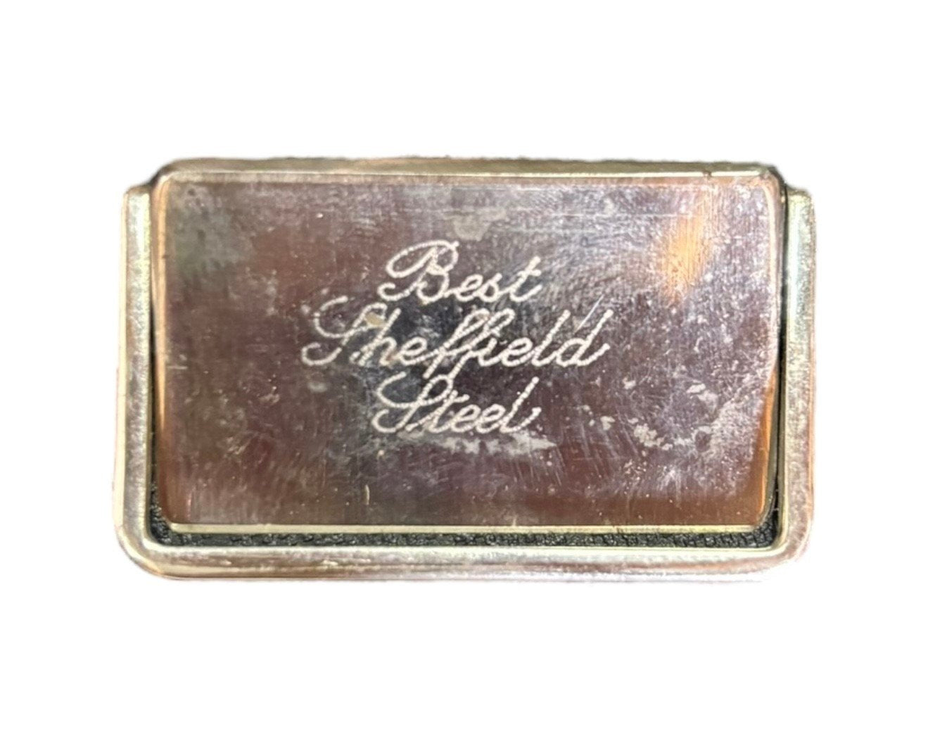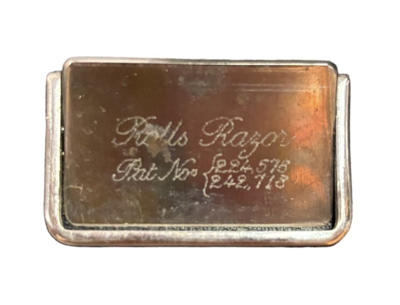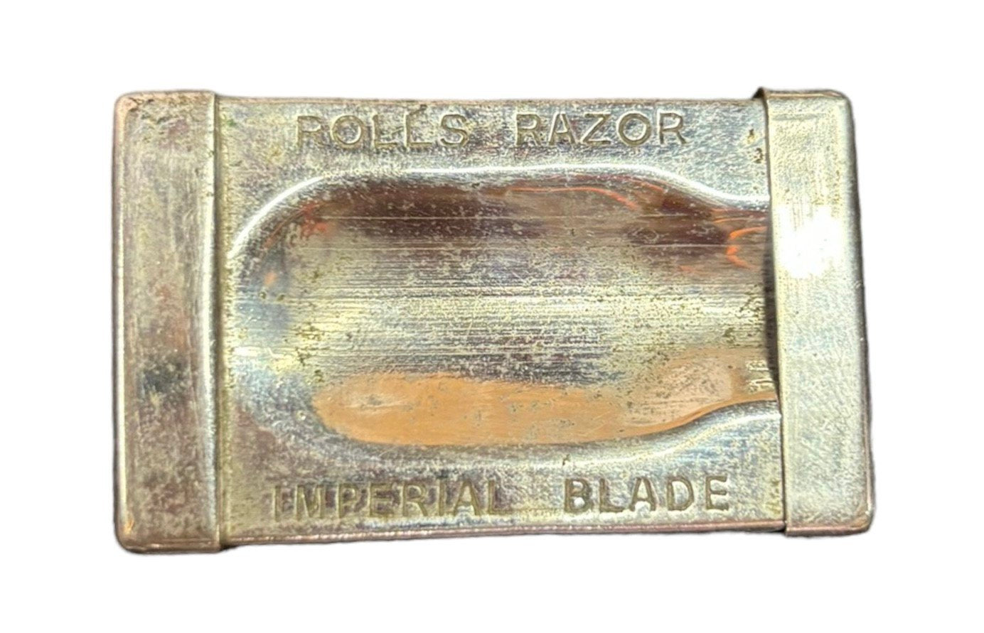 Rolls Razor Imperial Blade With Sheffield Steel. This piece is made in England. It is a sharp razor blade, best for display purposes. It is in it's original case that measures 2" x 1" x .5". Case has slight tarnish, razor is in very good shape.Take a look at the pictures for the best description. A photo is as good as a thousand words and is the best description of cosmetic condition. Use your ZOOM TOOL to best see this item! Please look closely at the photos for condition answers.