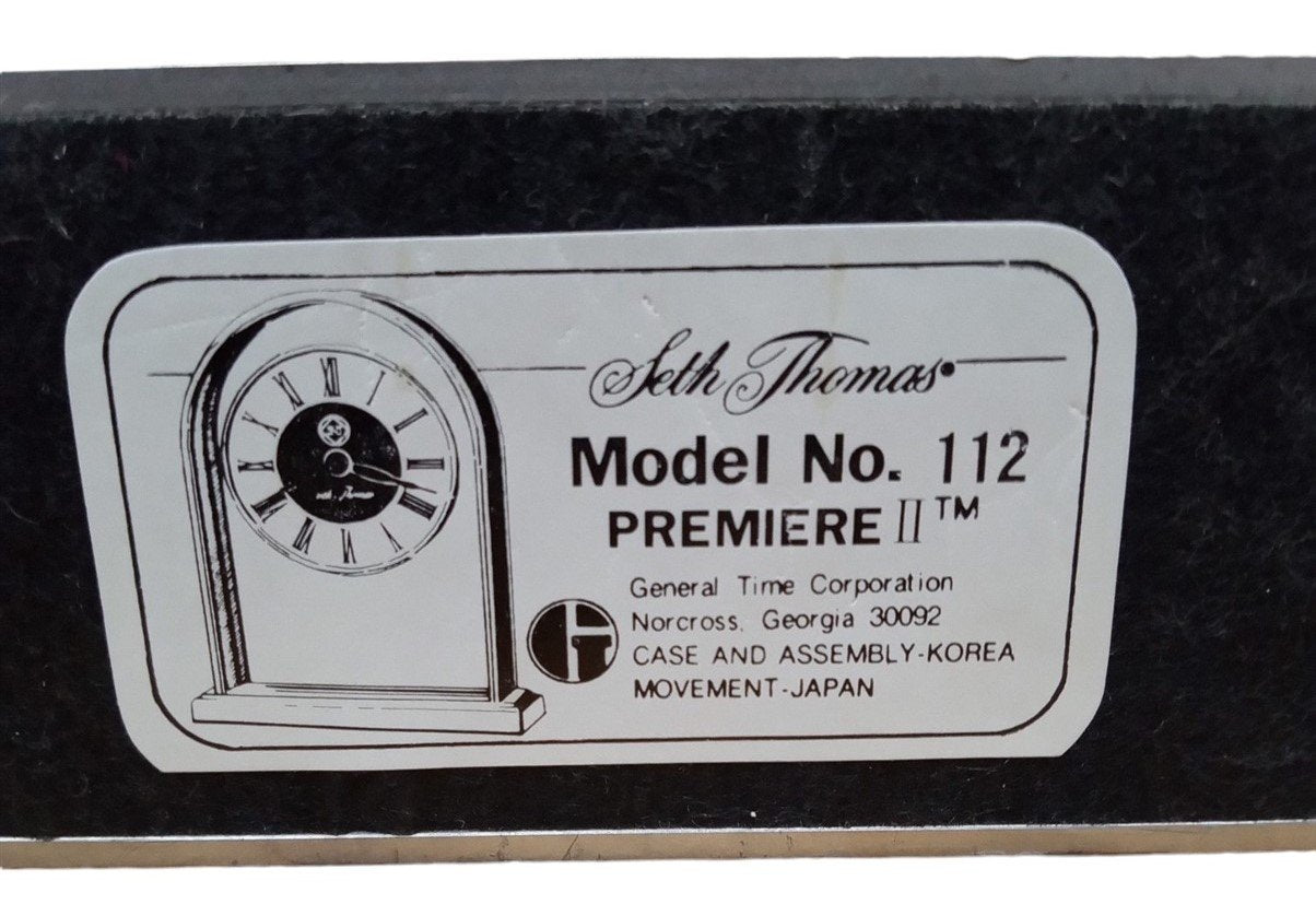 This is a vintage mantel clock made by Seth Thomas likely around the 1980s. It is in great condition for its age, showing no visible damage. This is a great item for any aspiring collector and makes a great piece of decor! This measures about 6" by 2" by 7".
