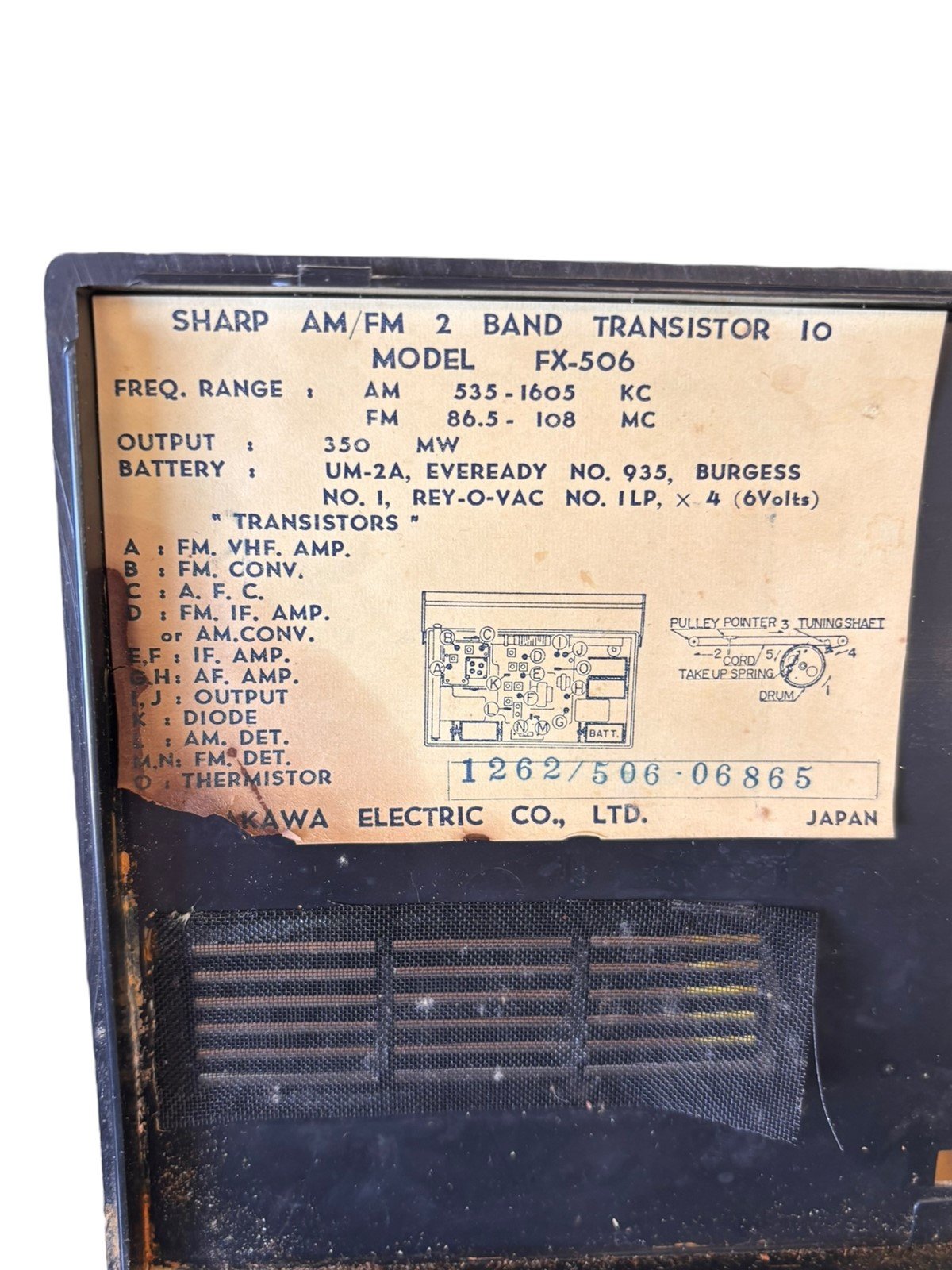 Sharp AM/FM 2 Band Transistor 10 Japan Radio Model FX-506 With Case Works