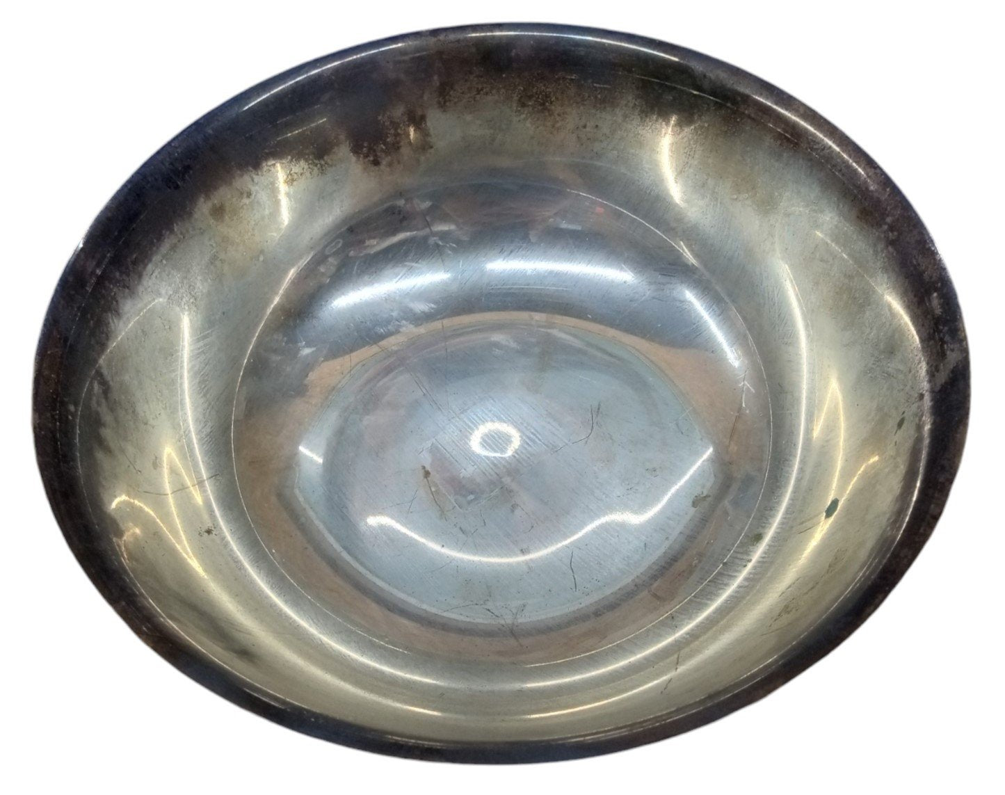 This is a vintage silverplate bowl made by Sheridan likely made around the 1960s. Some marks and scratches are visible in places as well as discoloration. This is a great item for any aspiring collector and is a perfect fit in any silver collection! This measures about 8" by 8" by 3".