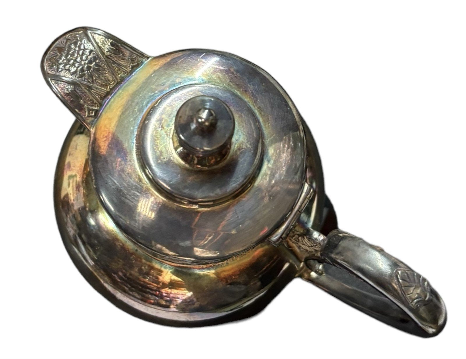 Gorgeous Silver Plated Pitcher by Wilcox Co. This piece is so stunning and is quadruple plated. It features a floral engraving on the handles, lid, base, and top. It has that classic antique silver tarnish, which is easily polished if that isn't the look for you, however it is just beautiful. It is very aged but in fantastic condition. This pitcher measures 6.5 inches tall and 4 inches wide. The handle measures 3.5 x 2.5 inches. The logo is engraved at the bottom. Such a stunning addition to any collection!Take a look at the pictures for the best description. A photo is as good as a thousand words and is the best description of cosmetic condition. Use your ZOOM TOOL to best see this item! Please look closely at the photos for condition answers.