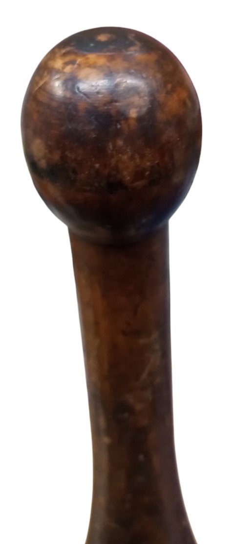 This is a vintage wooden bowling/juggling pin made by Spalding likely around the 1950s. Some marks and scratches are visible in places. This is a great item for any aspiring collector and is a perfect fit in any antique collection! This measures about 1" by 4" by 16".