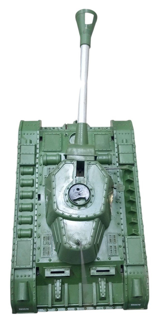 This is a vintage Tiger Joe tank toy likely made around the 1960s. Marks and scratches are visible. This is untested and is missing the remote. This is a great item for any aspiring toy collector and would make an awesome retro display piece! This measures about 33" by 18" by 13".