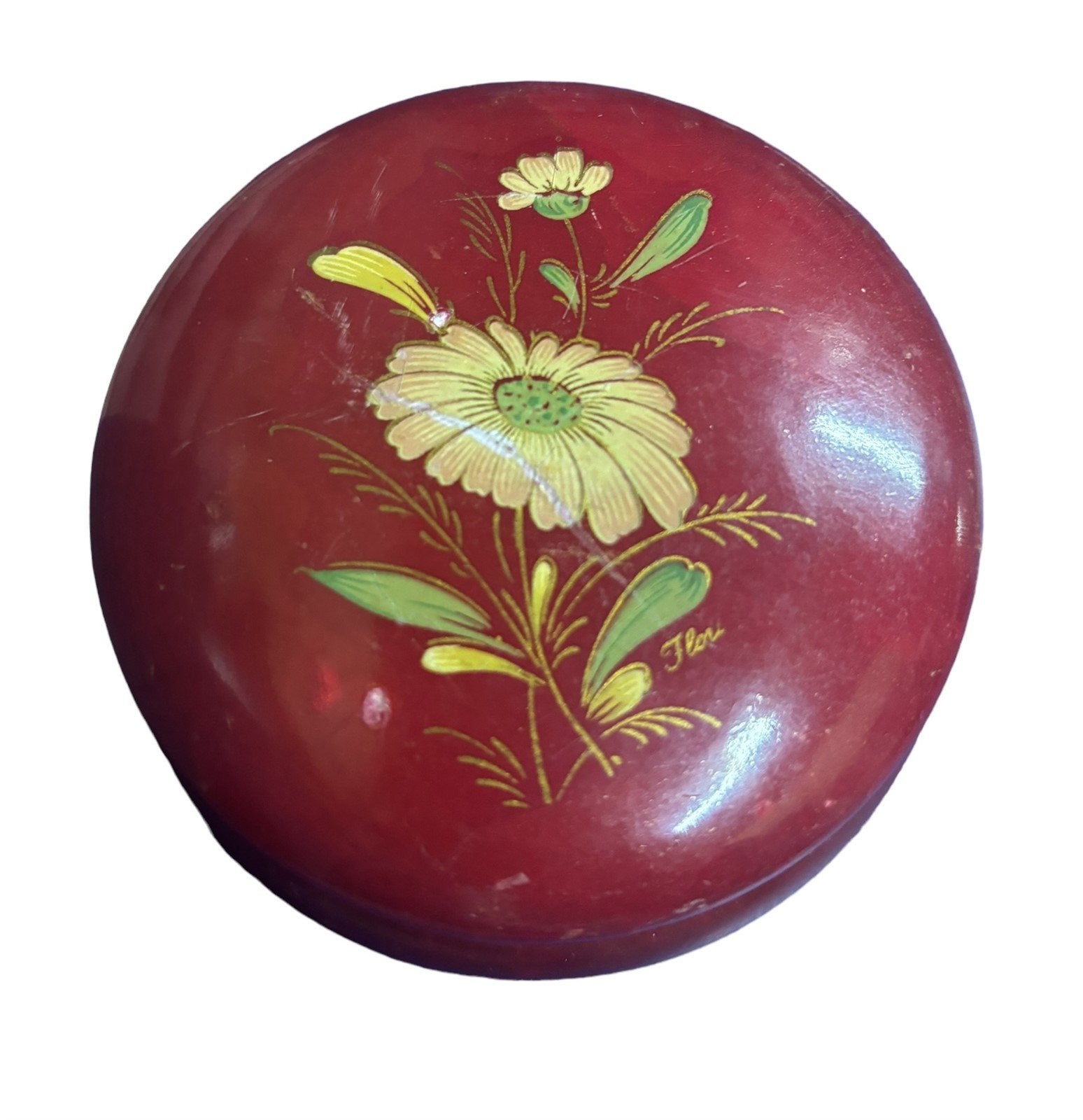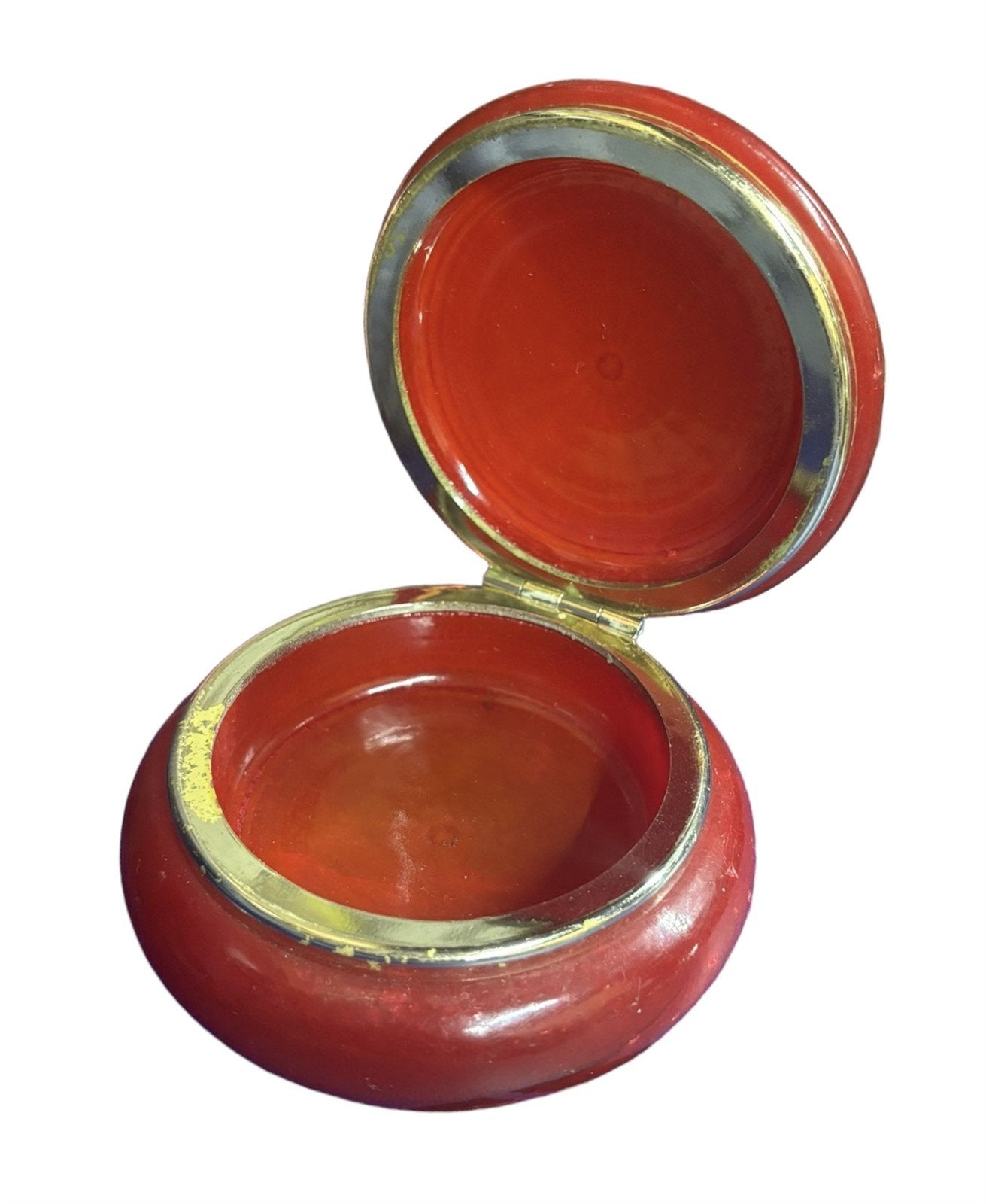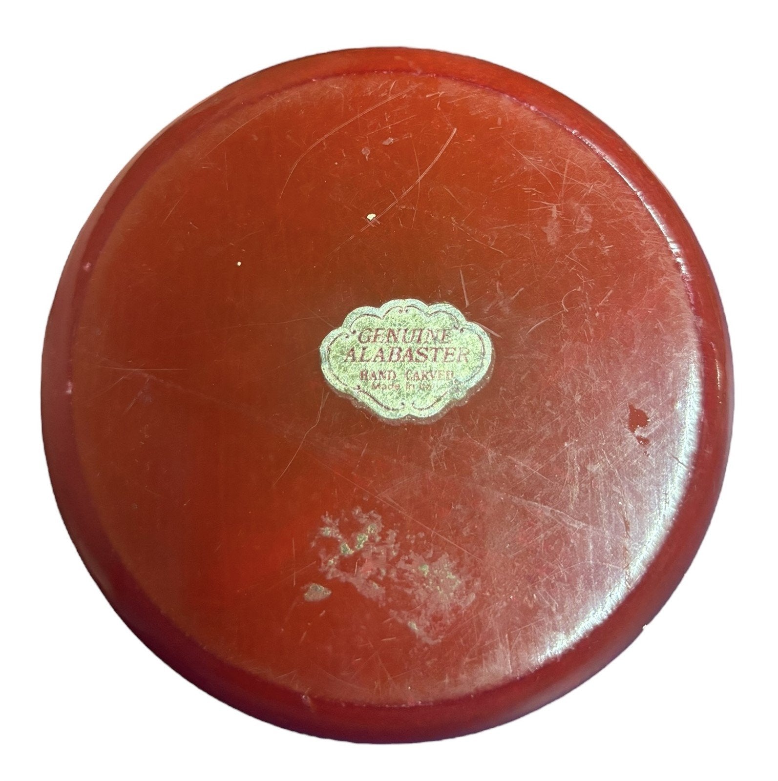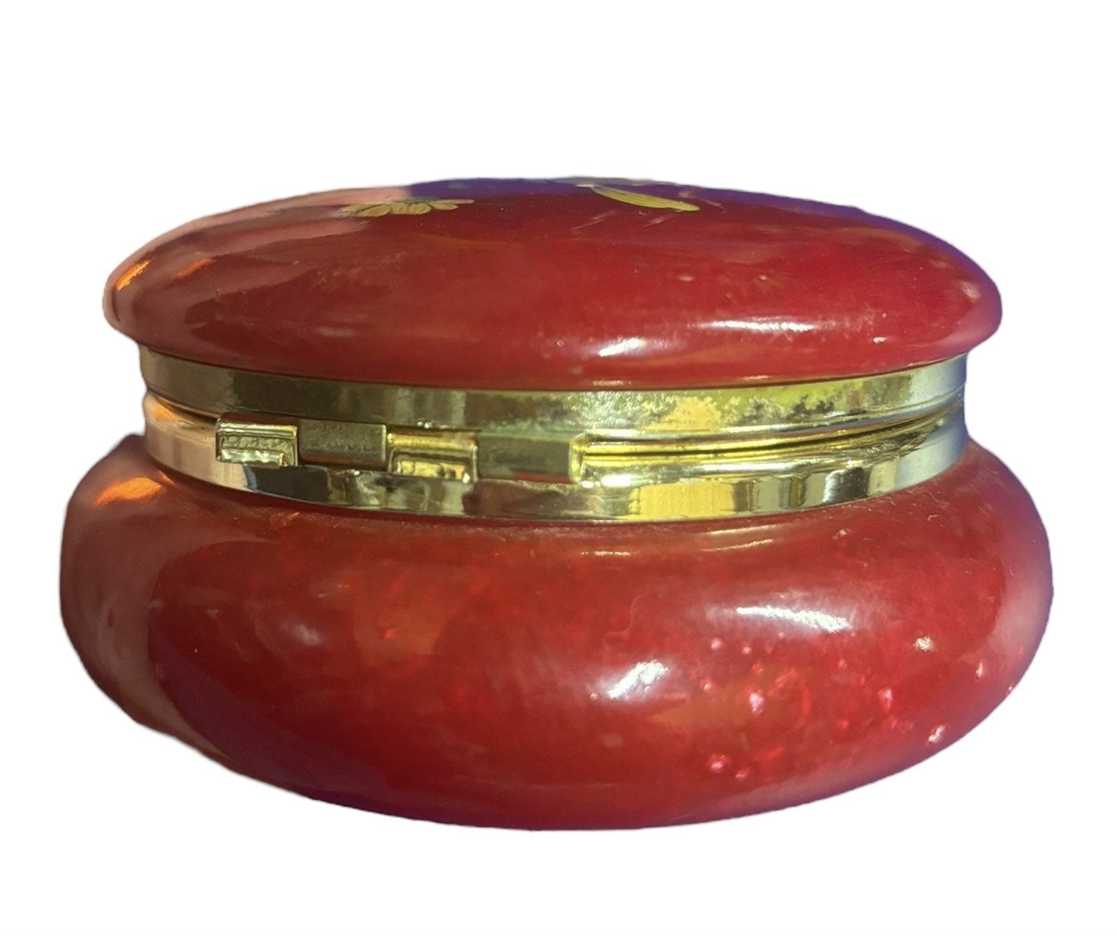 Trinket Box Alabaster Red Italian Hinged Vanity Jar Floral Gold Home Decor