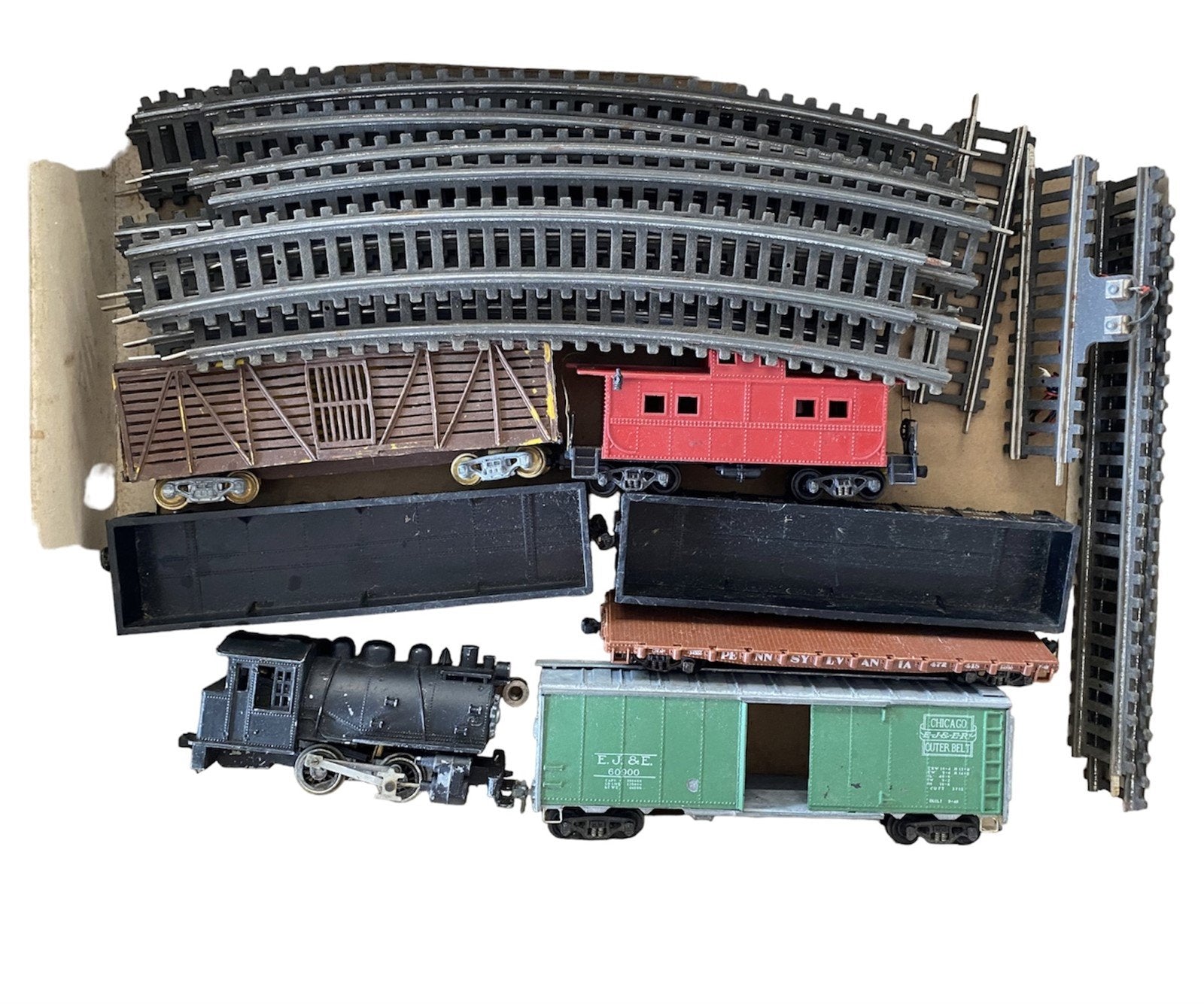 This is a mighty midget scale model train set by Varney. The parts have some rust but other than that it is in good condition. There is one conductor cart and 5 attachable carts. Includes transformer.Take a look at the pictures for the best description. A photo is as good as a thousand words and is the best description of cosmetic condition. Use your ZOOM TOOL to best see this item! Please look closely at the photos for condition answers.