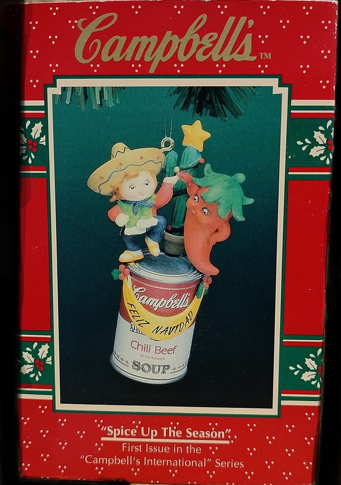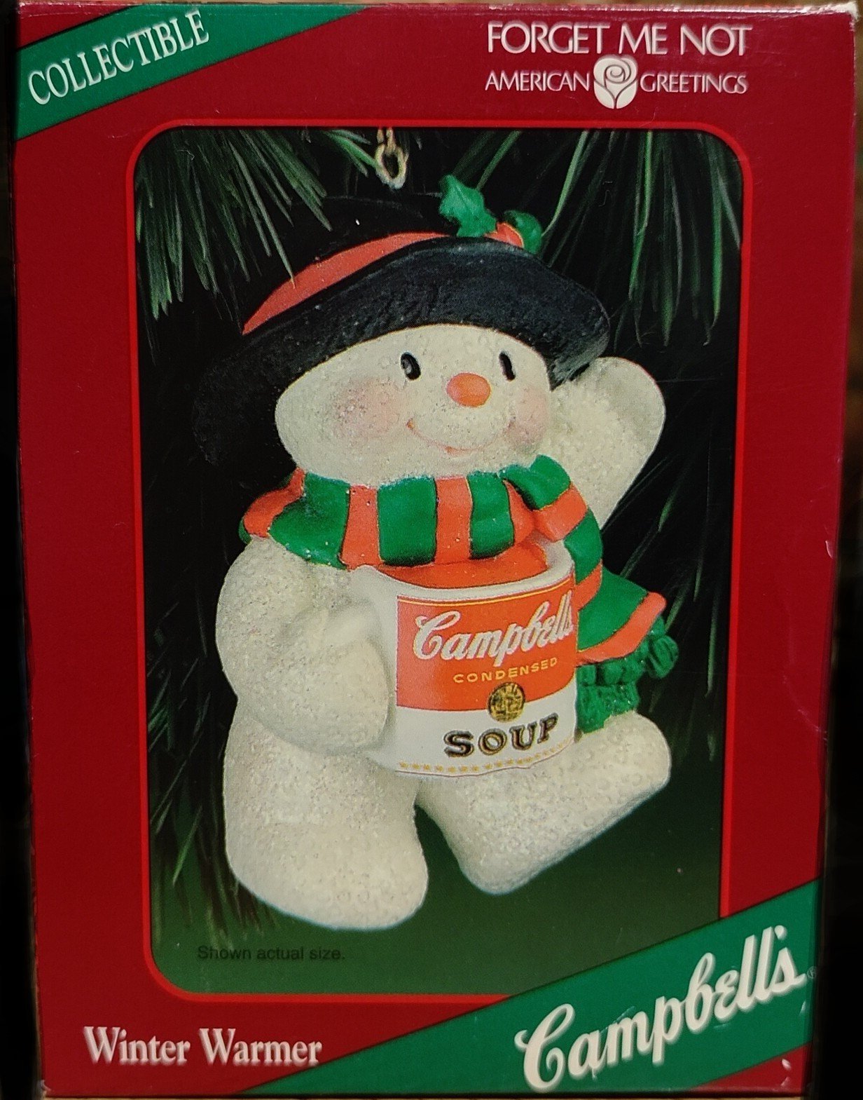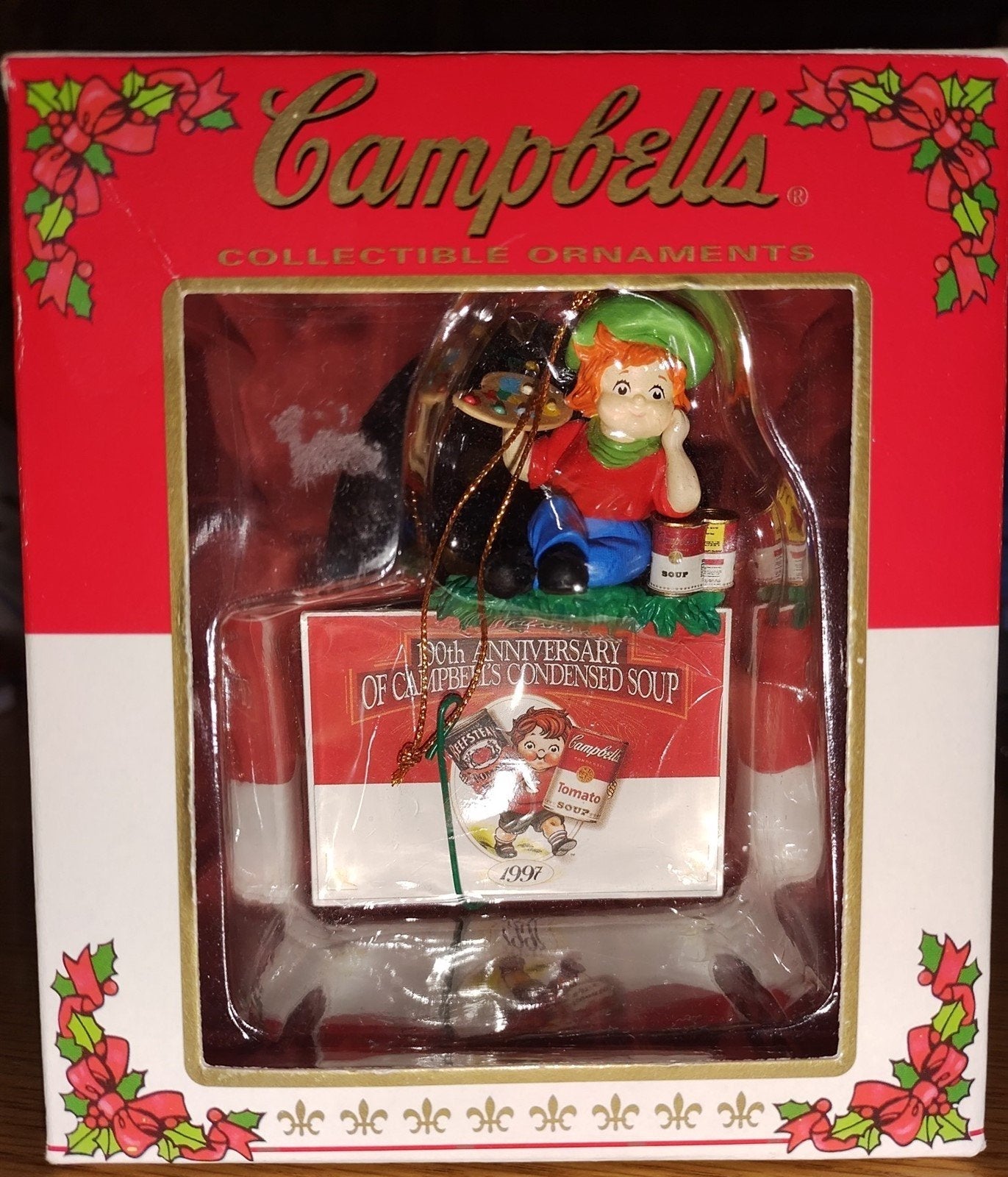 Here today we have a set of 3 fun looking Christmas ornaments by Campbell's perfect for hanging up on your tree, or general hanging decorations on could utilize for display or decorative purposes! All three ornaments come in their original boxes, sealed up and unopened! These boxes are all in excellent conditions with no major tears or breaks and only slight weathering due to age, though the ornaments inside are all still in mint condition. Take a look at the pictures for the best description. A photo is as good as a thousand words and is the best description of cosmetic condition. Use your ZOOM TOOL to best see this item! Please look closely at the photos for condition answers. We describe items as best we can and as we see them. Some details may be missed but not intentionally. Condition of an item is our opinion. If you have any questions on the condition of these items let us know before you purchase! Thanks for looking!-