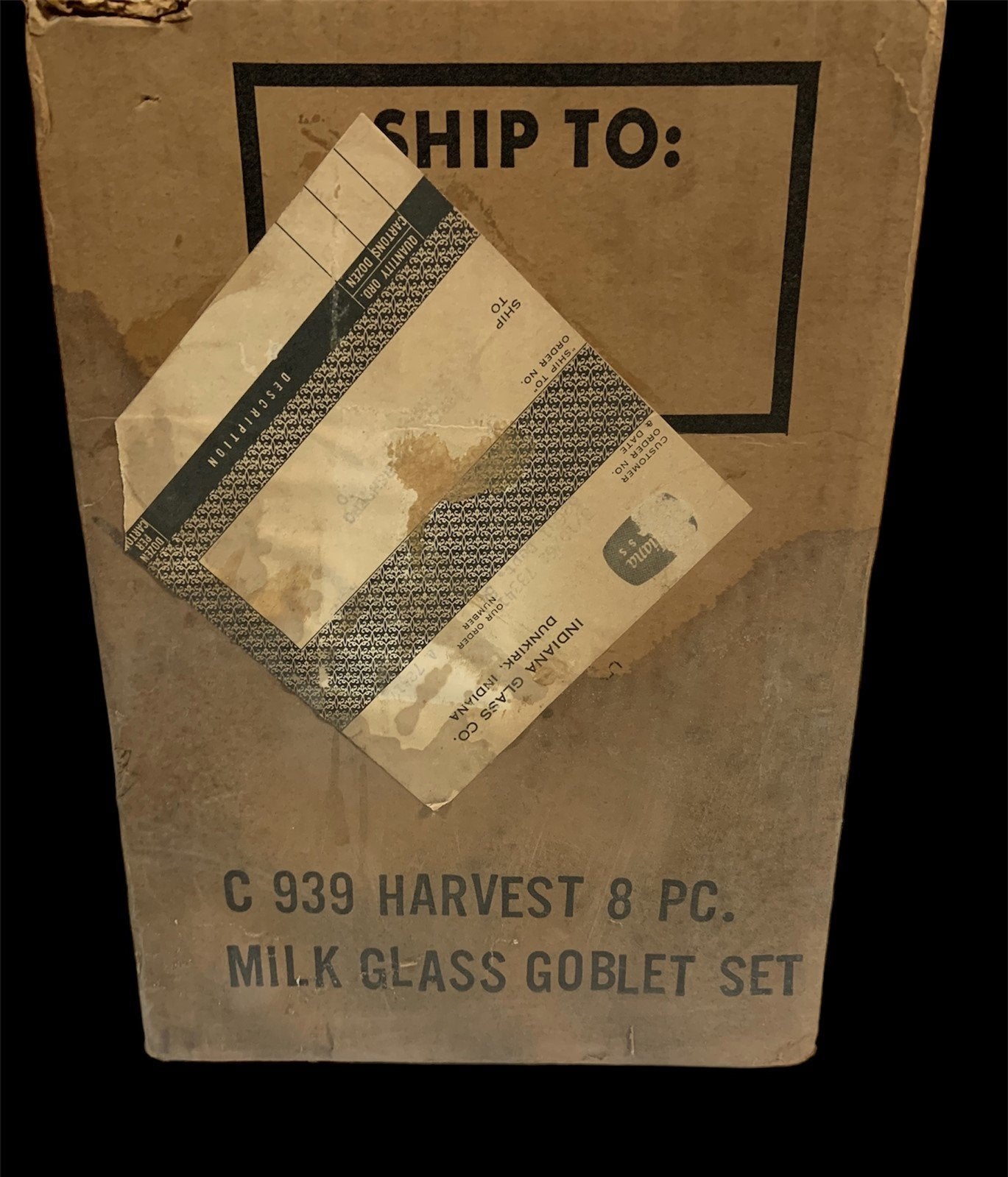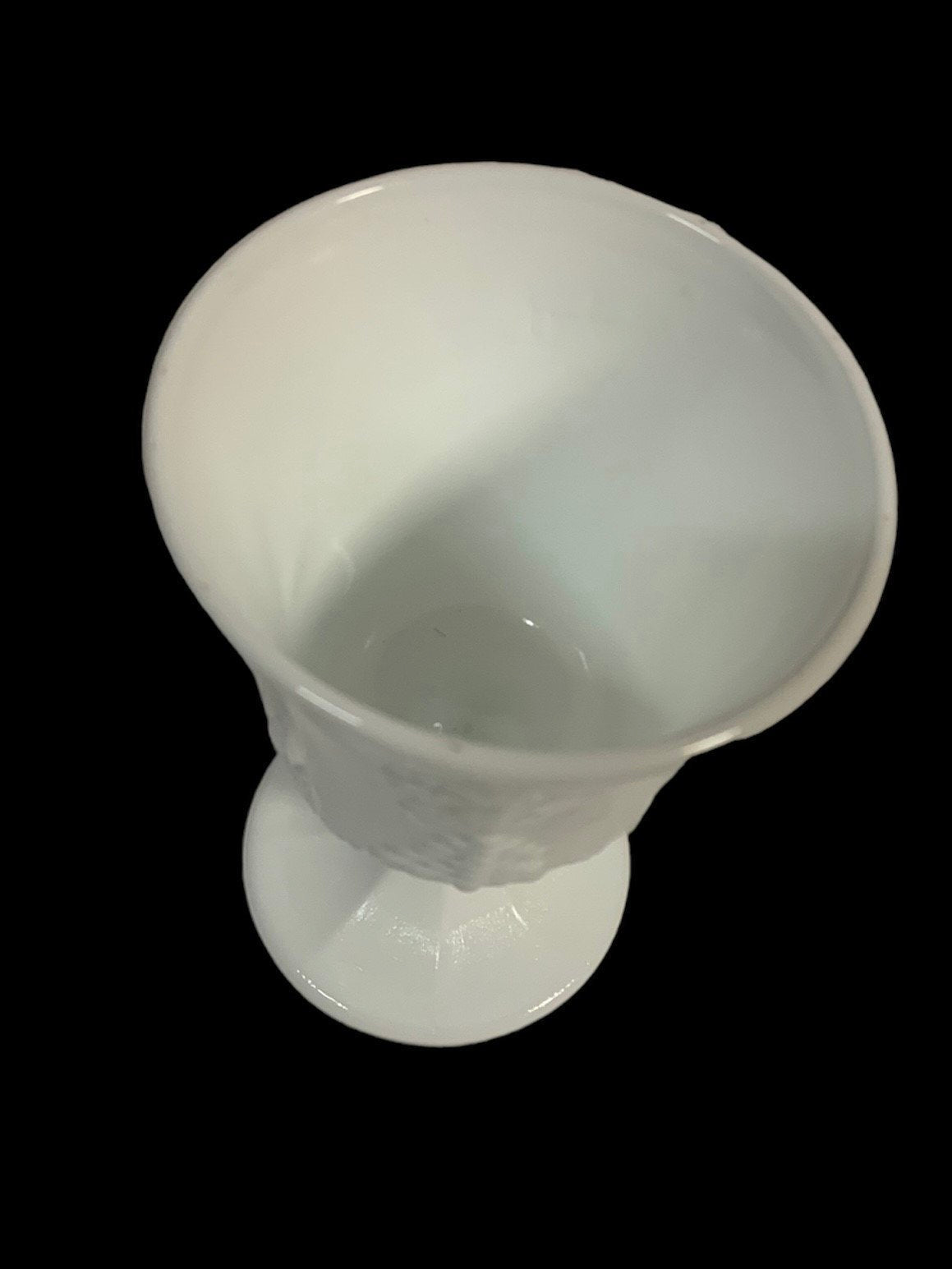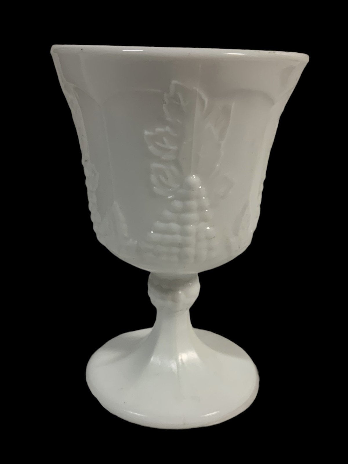 Comes with 8 beautiful white vintage milk goblets. Each one has a grape vine detail. The goblets are 5.5 inches tall and 3 inches wide. They are straight from the 1950's and come with the original box.Take a look at the pictures for the best description. A photo is as good as a thousand words and is the best description of cosmetic condition. Use your ZOOM TOOL to best see this item! Please look closely at the photos for condition answers.