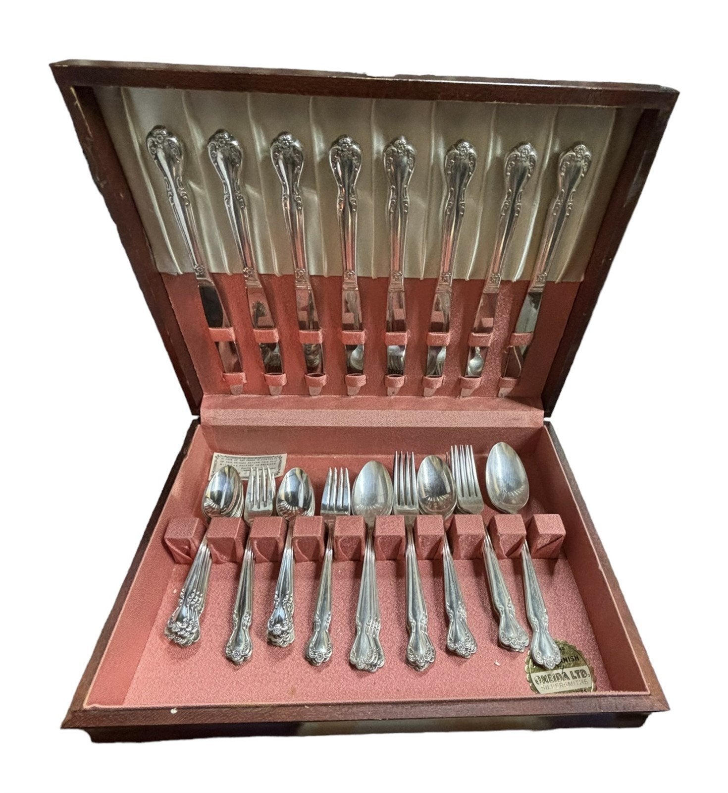 Flatware Rogers Bros 1847 Eternally Yours 36 pc Silverplate Cutlery Wood Case