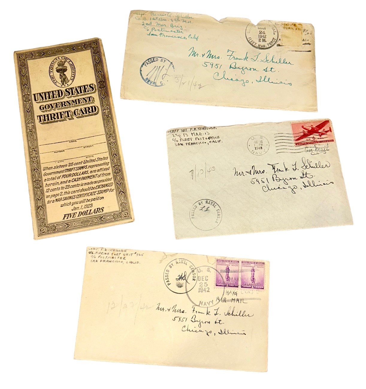 United States World War I Gov. Thrift Card 3 World War II Navy Soldier Letters