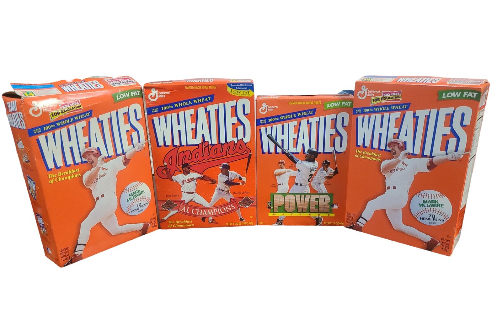 Vintage Set Four Boxes MLB Wheaties Cereal Baseball 1990s Indians Power Hitters