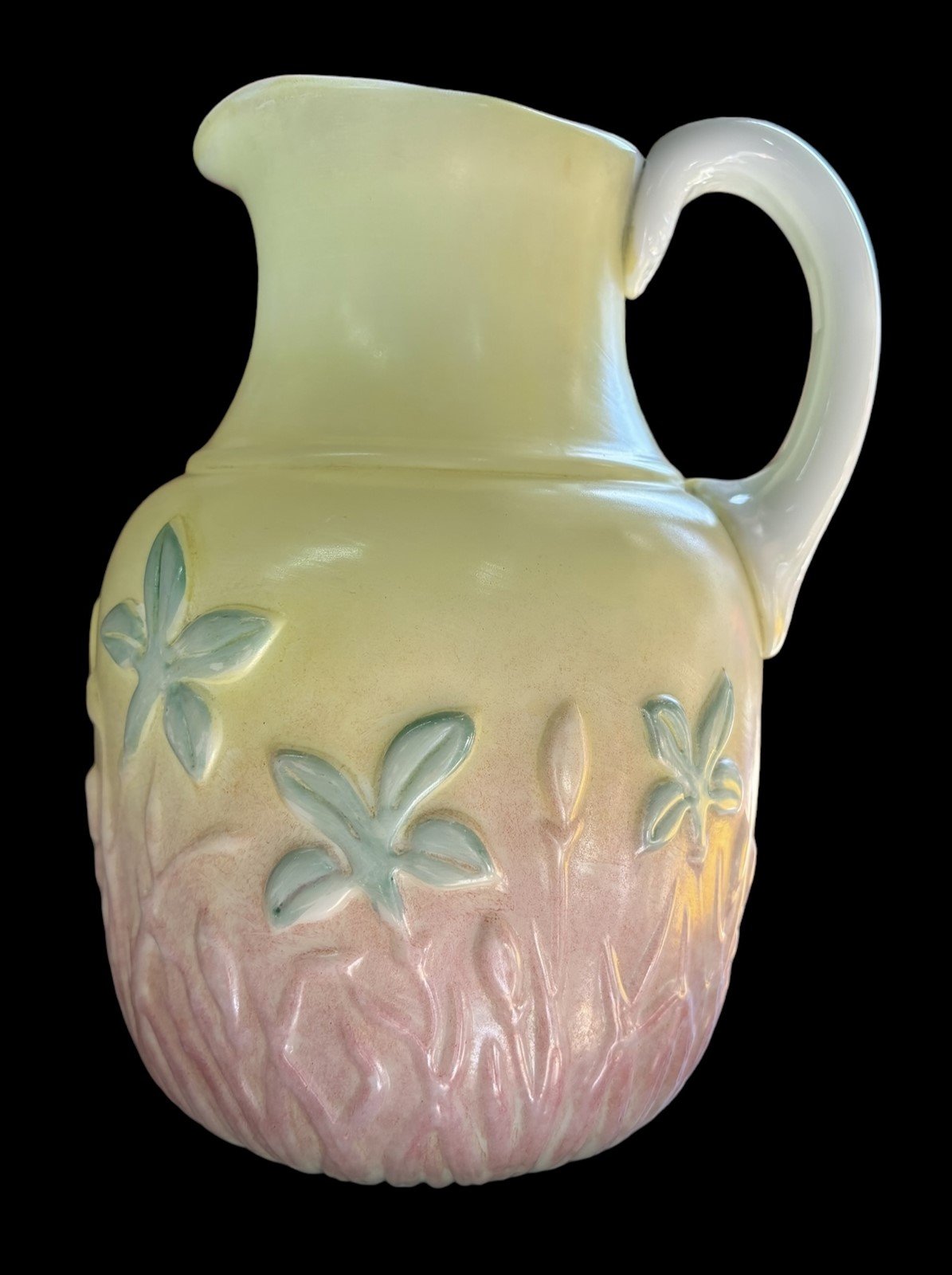 Milk Glass Pitcher Pastel Floral Pink Yellow Iris 1800s Antique Drinkware
