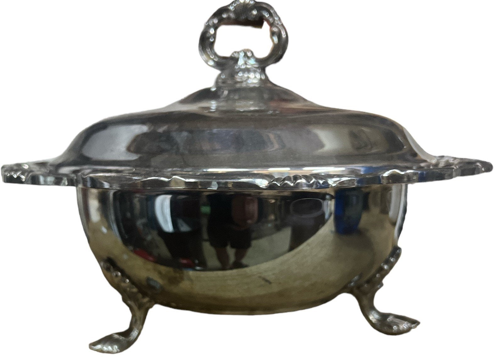Silverplated Serving Bowl Vintage 3-Footed with Handle and Lid Scalloped Edge