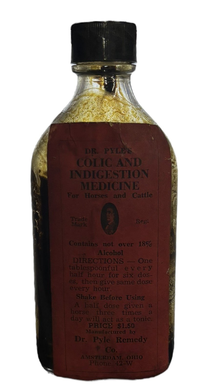 Antique Medicine Bottle Dr. Pyles Colic and Indigestion for Horses and Cattle