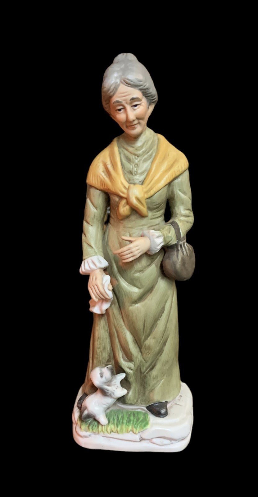 Ceramic Bisque Vineyard Statue Old Woman With Dog Vintage Home Decor