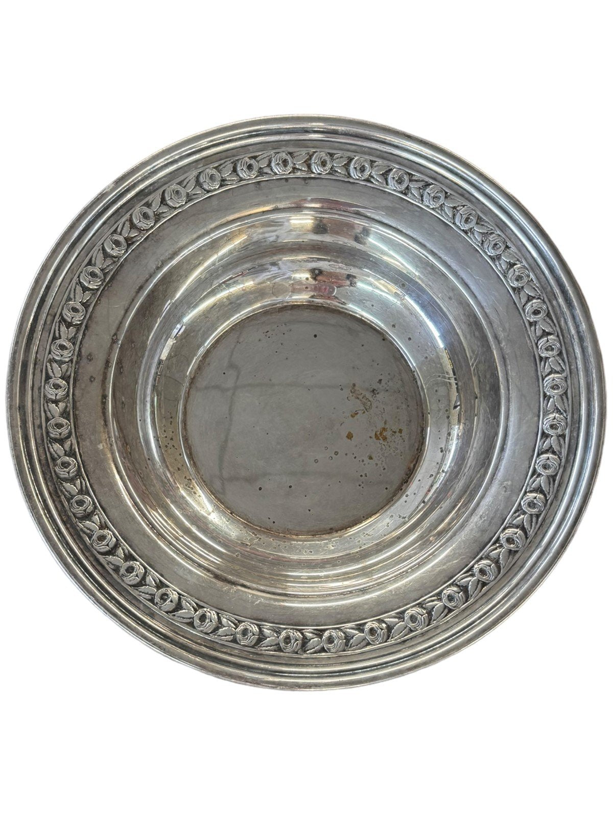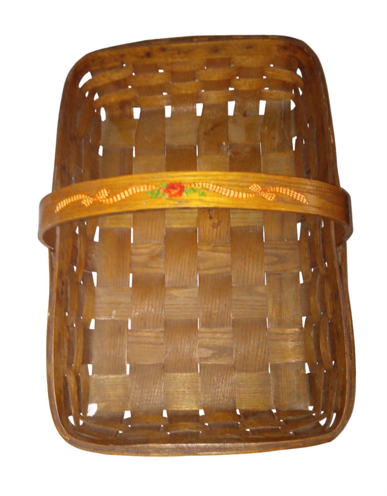Large Bread Basket with Handle Antique Hand-Painted Rose with Ribbon Vintage