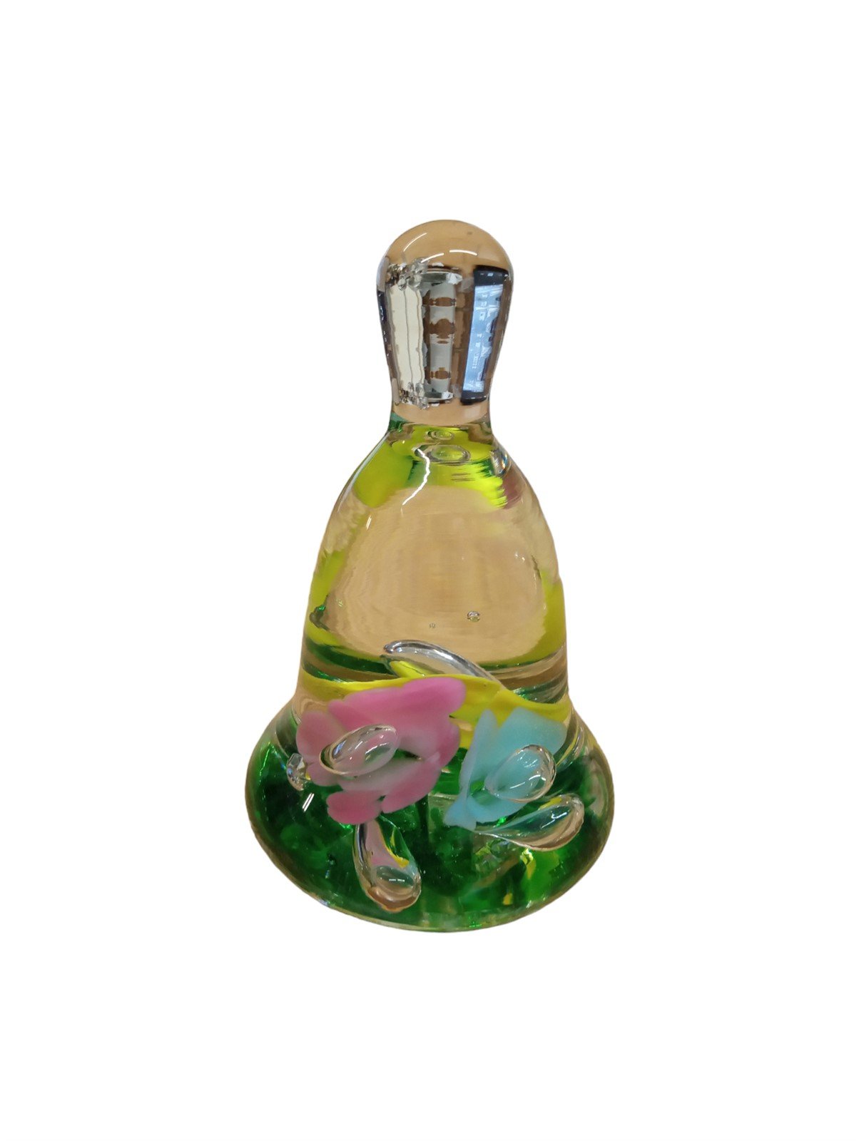Joe St Claire Bell Shaped Glass Green Floral Paperweight Vintage Collectible