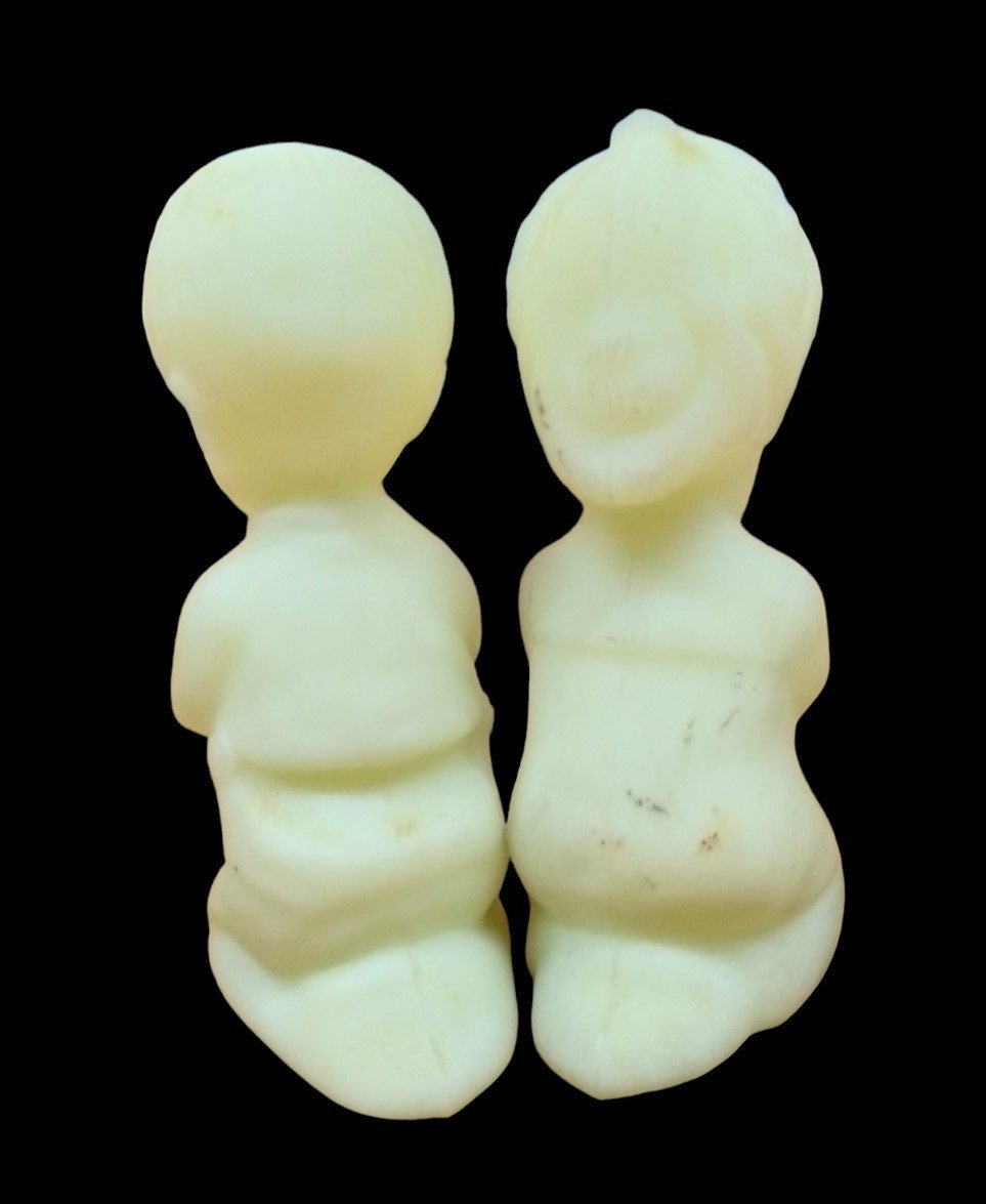 Fenton Praying Children Figures Vaseline Glass Vintage Collectible Decorative