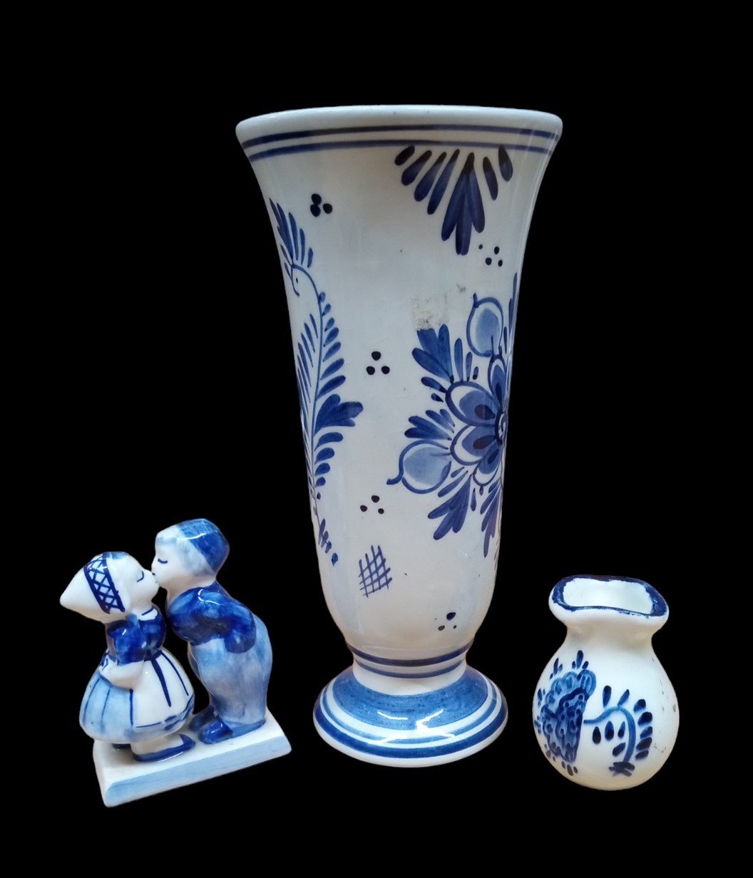 Delfi Blue Glass Set Vintage Collectible Decorative Vase Miniature Vase & Figure