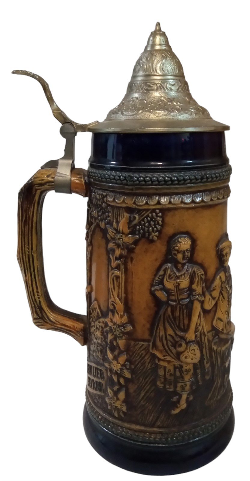 Pewter Beer Stein with Lid Antique Gerz German Vintage Der Trunk Sei Klar