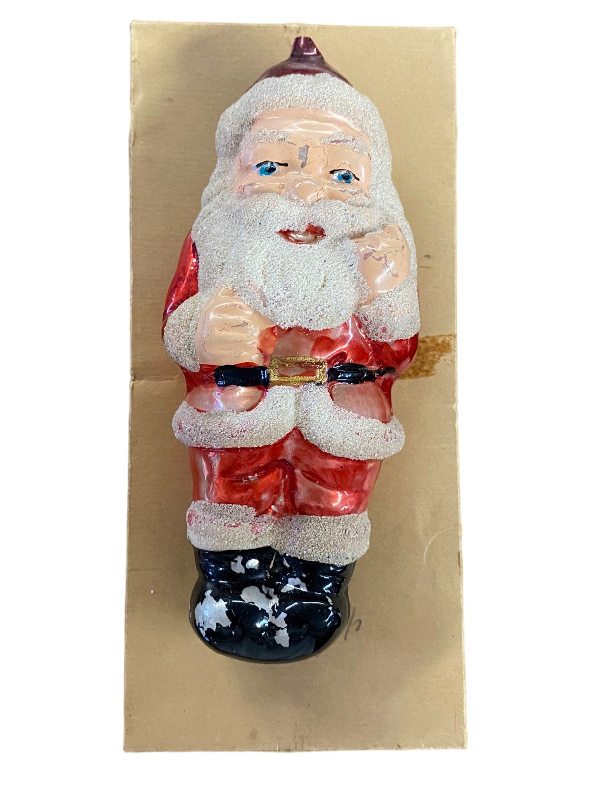 Reindeer Ornament White Sparkling Glitter Vintage Red Bow Blue Eyes Sitting Buck