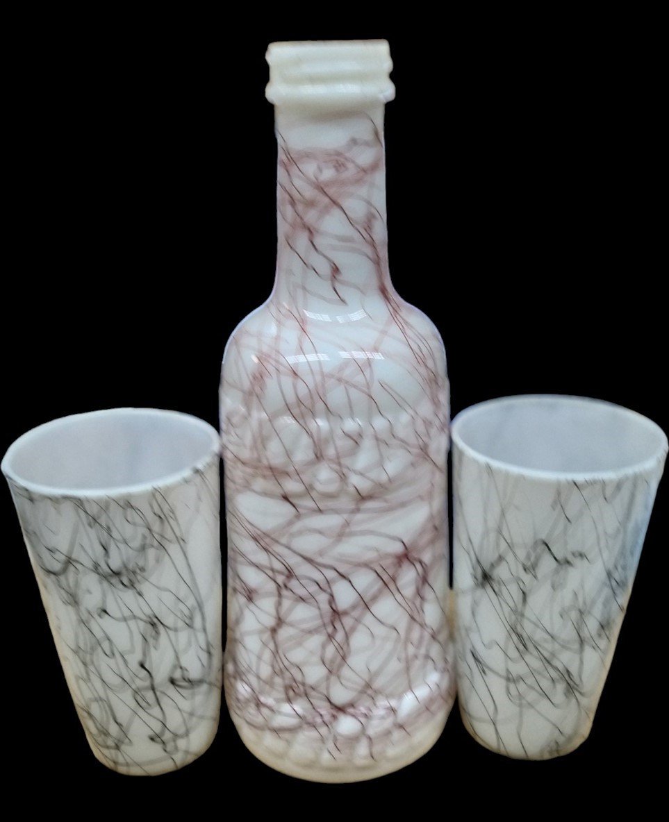 Hazel Atlas Milk Glass Tumblers And Decanter Set Vintage Collectible Drinkware