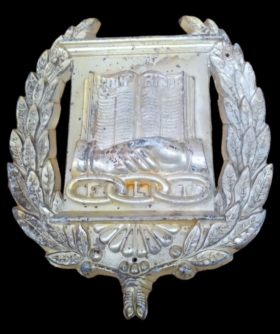 Order Of Odd Fellows Holy Bible Casket Plate Vintage Collectible Religious Decor