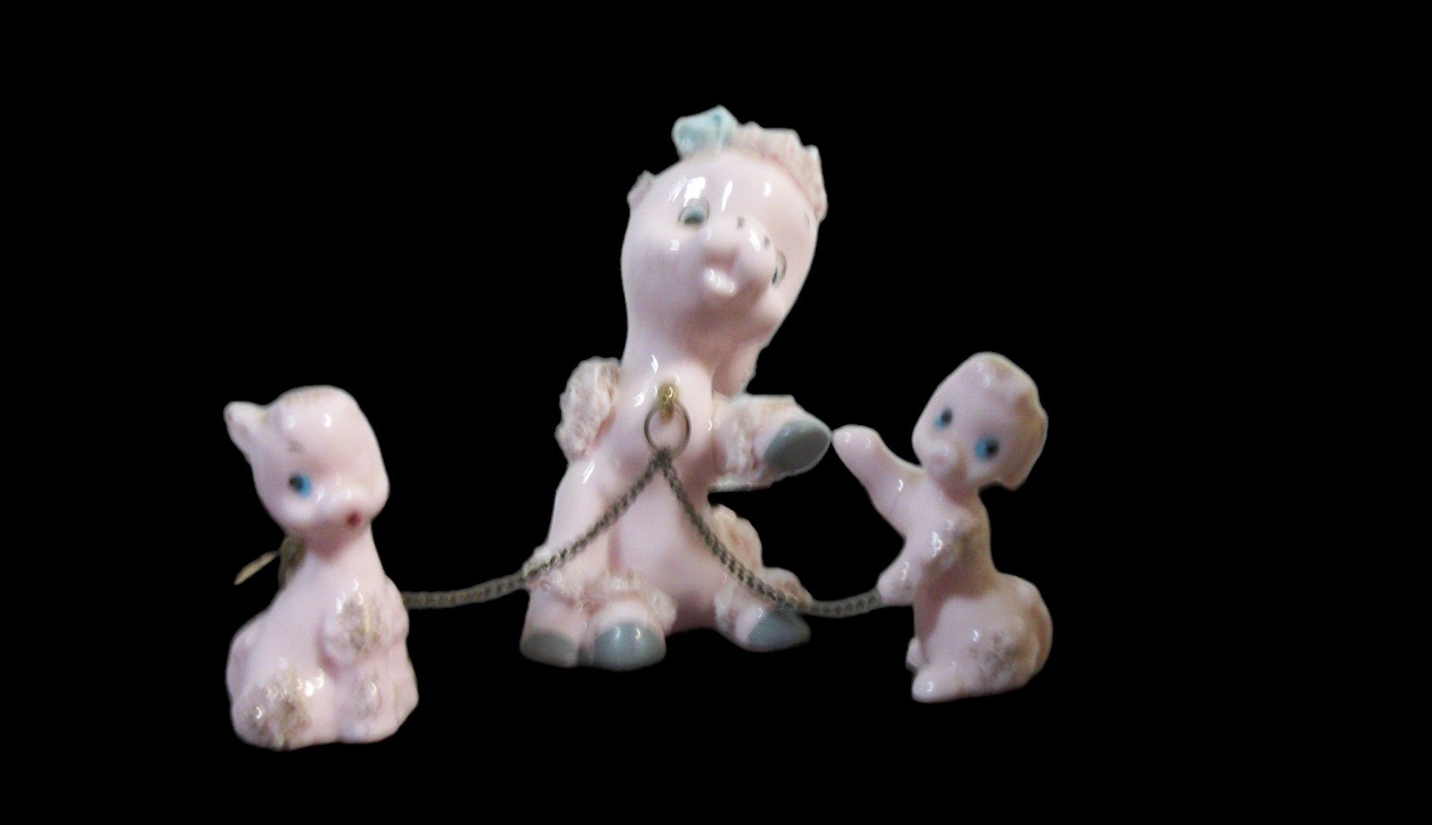 Vintage Antique Arnart Porcelain Lamb Figurines with Cross Arrow Mark 7835
