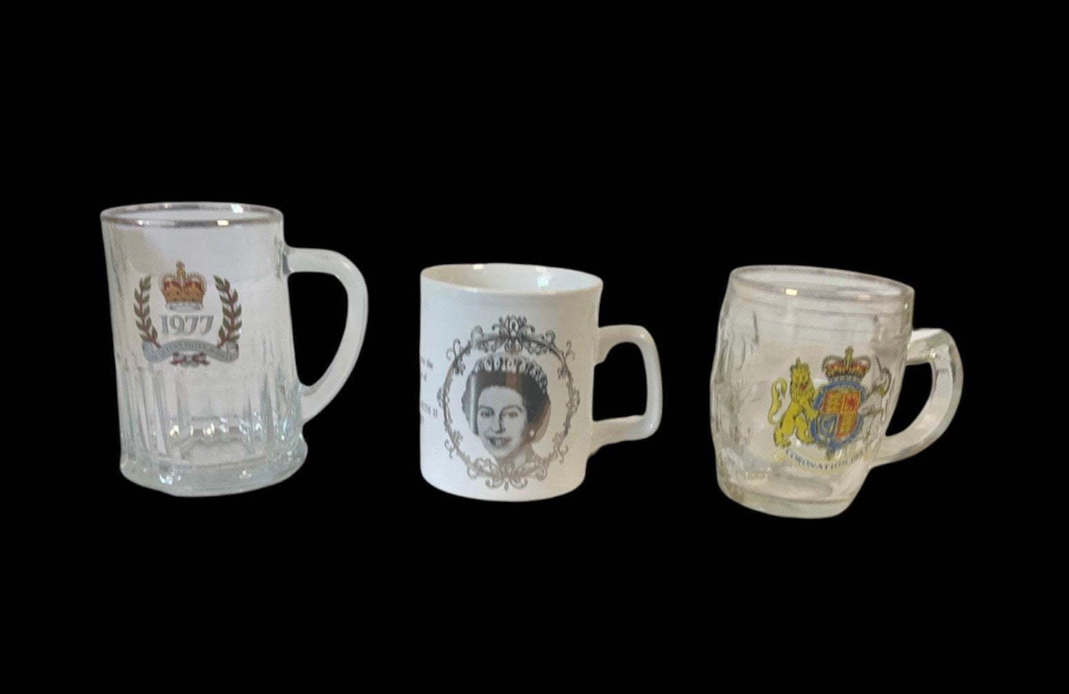 Lot of 3 Vintage Cups Queen Elizabeth II Commemorative Glasses Silver Jubilee