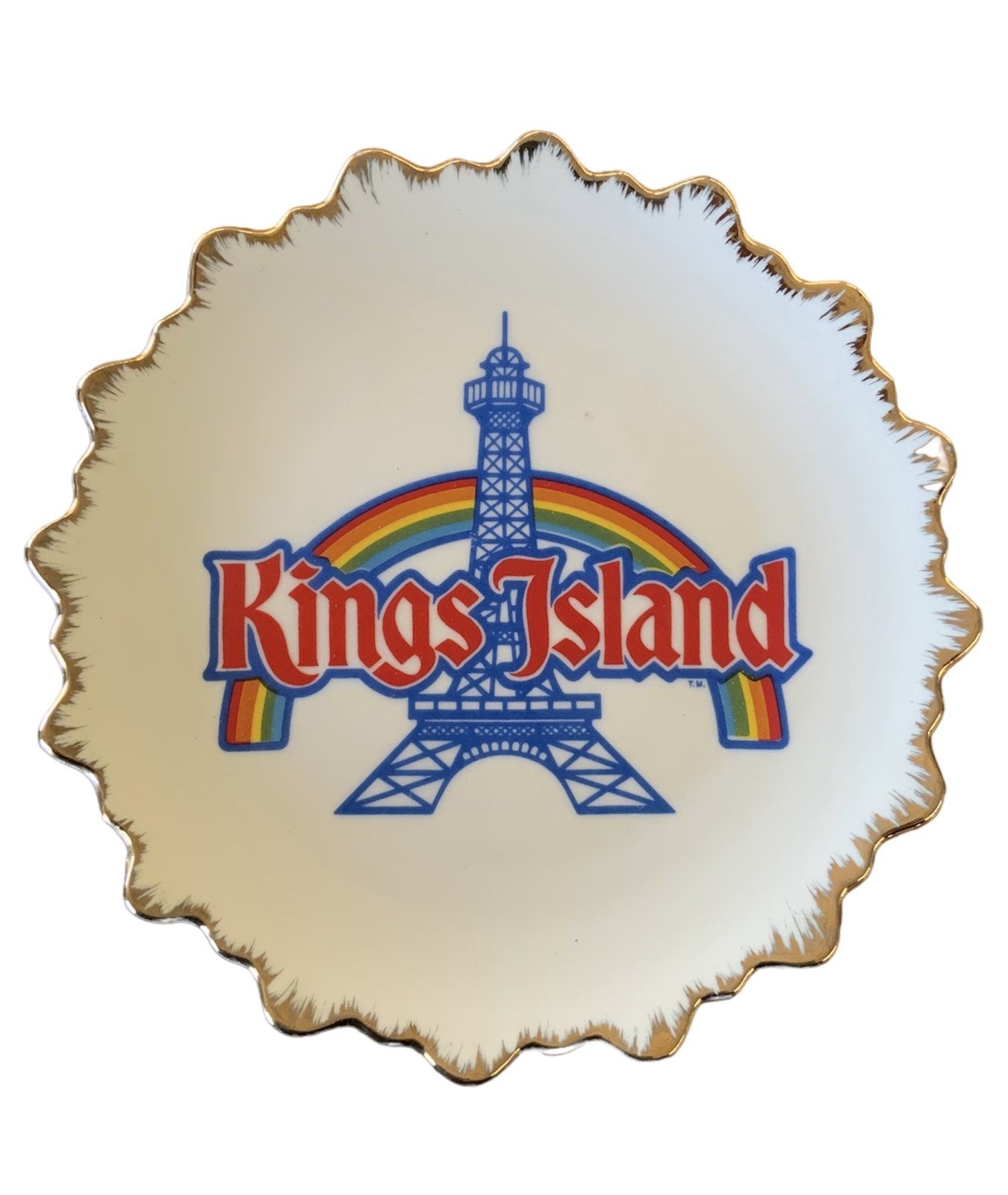Kings Island Rare 1981 Decorative Plate Eiffel Tower Rainbow Scalloped Gold Rim