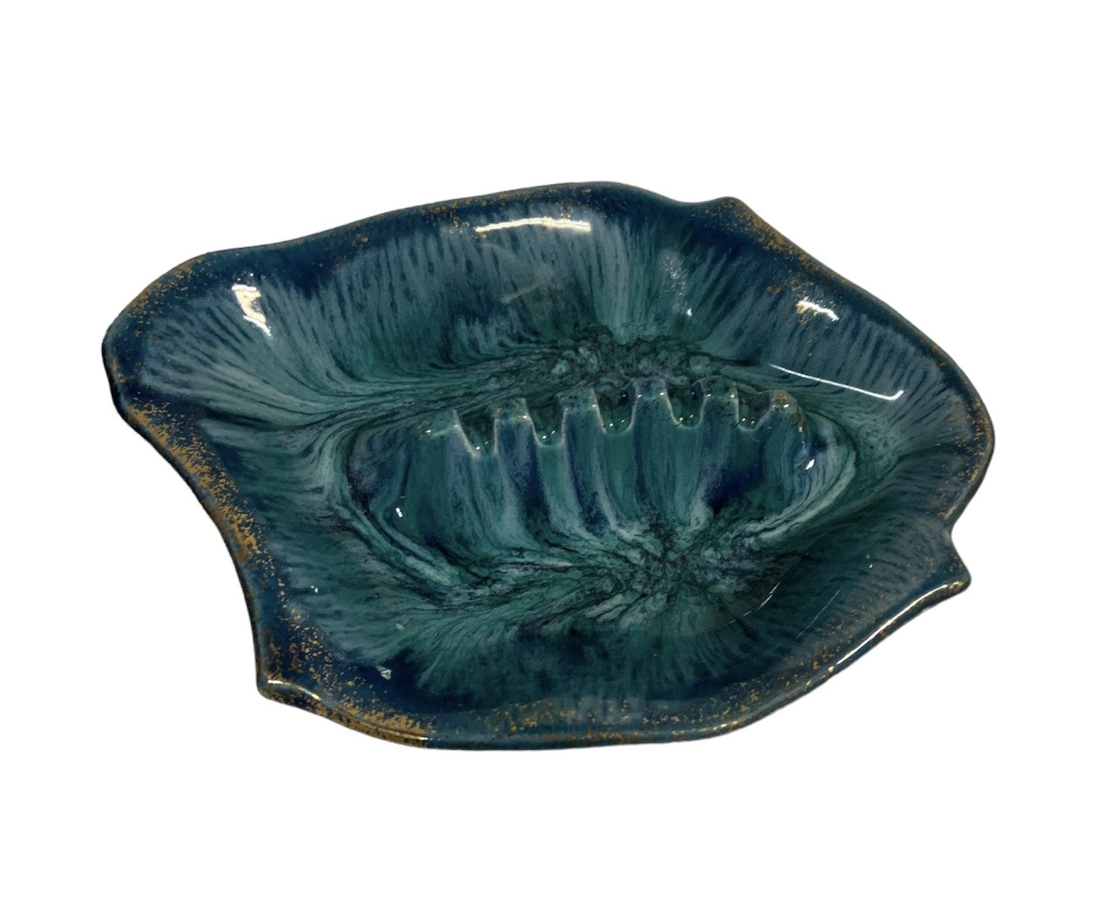 Ashtray California Original Handmade Pottery Turquoise Blue with Gold Rim