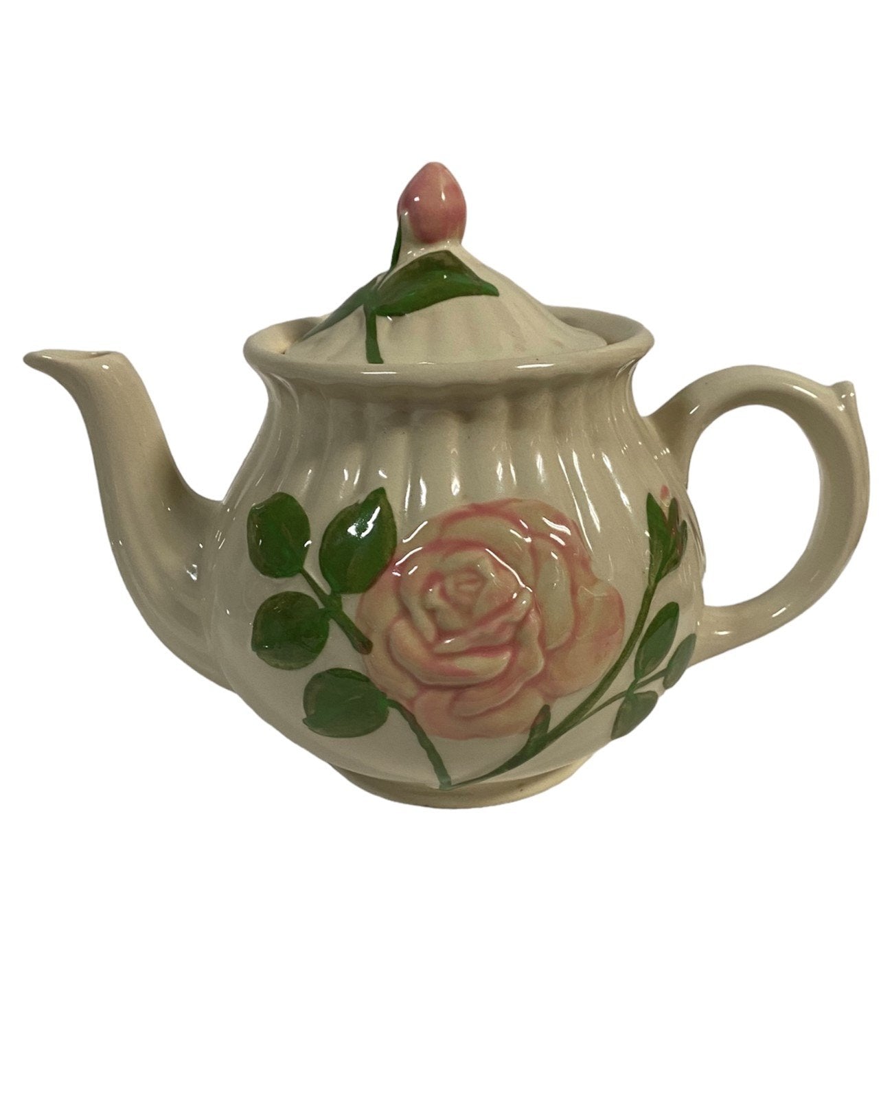 Shawnee Hand Painted Pottery Rose Tea Pot 1950 Vintage, USA made