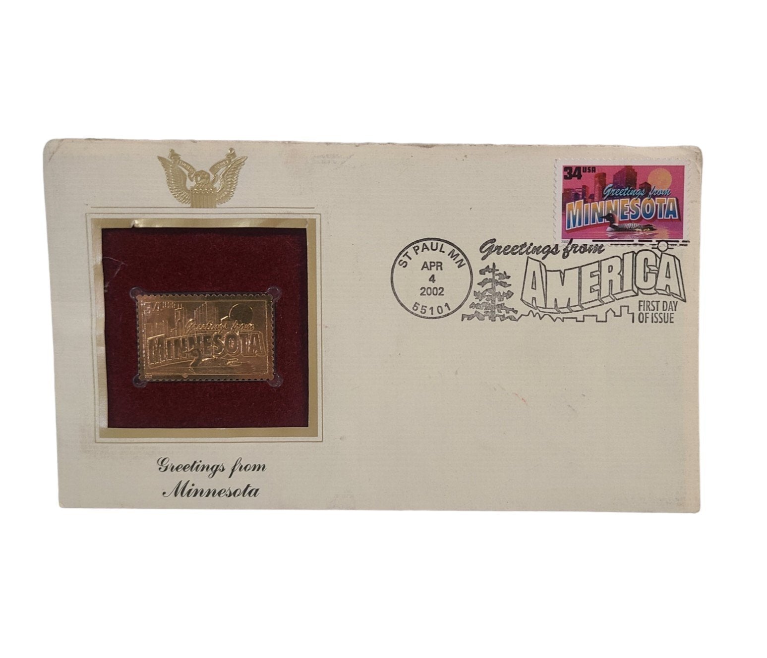Greetings From Minnesota Gold Stamp United States Postal Service Vintage 2002