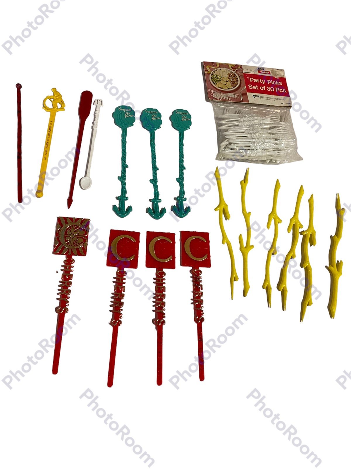 Retro Seagrams Gin and Cherry's Beverage Stirrers Swizzle Sticks Lot