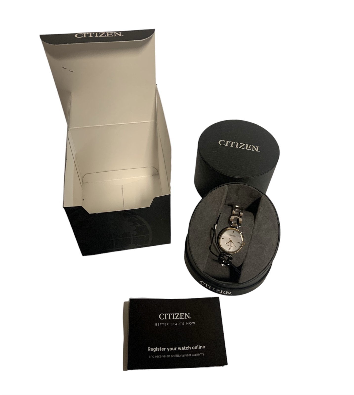 New Unused Citizens Eco Watch Silver Chain Link Gold Accents Works Original Box